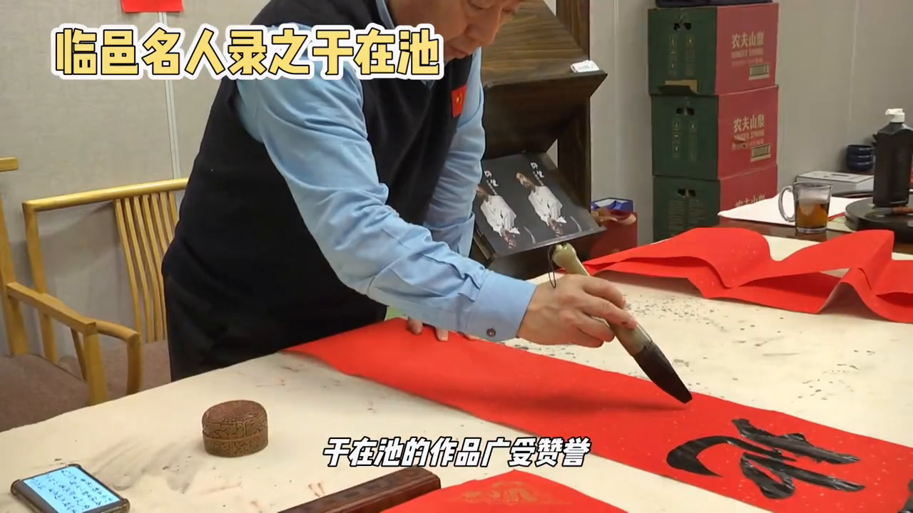 于在池的作品广受赞誉,被山东电视台、辽宁电视台、大连电视台等媒体报道过。他还会在大连市和家乡德州市举办过个人书法作品展,并把展出的100幅作品无偿捐献给家乡。于在池不仅是一位杰出的书法家,也是一位多才多艺的文化名人,他的艺术成就和贡献值得我们学习和传承。