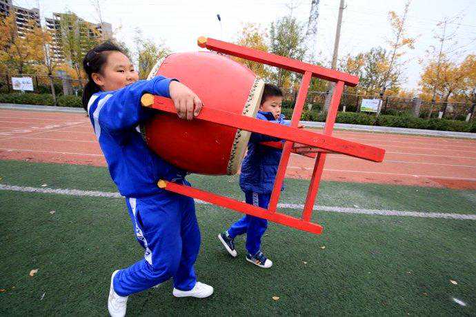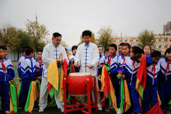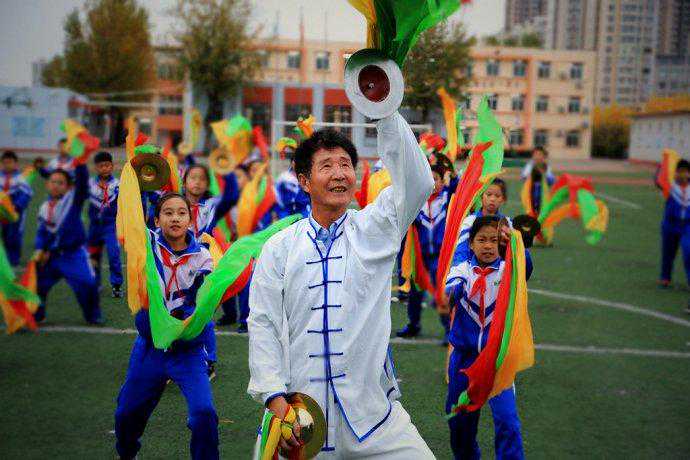 一般经过半年多的练习,小学生们就可以将“汉沽飞镲”练得有模有样,一声口令响起,原本叽叽喳喳的操场立刻就安静下来,学生们矫健婀娜的身姿与铿锵震撼的镲声鼓声,构成了校园里一道别样的风景。老一代的努力没有白费,汉沽飞镲这项拥有百年历史的非物质文化遗产也算后继有人了。