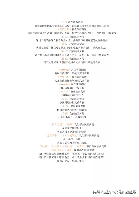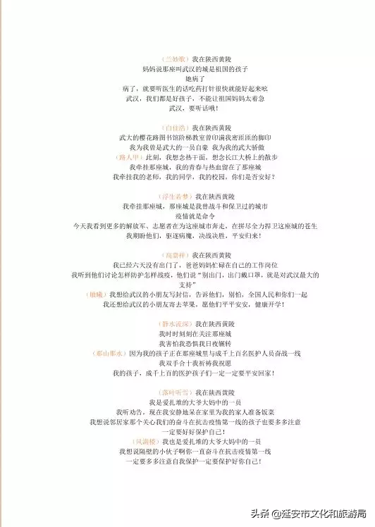 志之所至,诗亦至焉。发端于武汉的疫情牵动着全国人民的心。黄陵作家们用暖心的笔触表达了与武汉、湖北人民共抗疫情的决心。