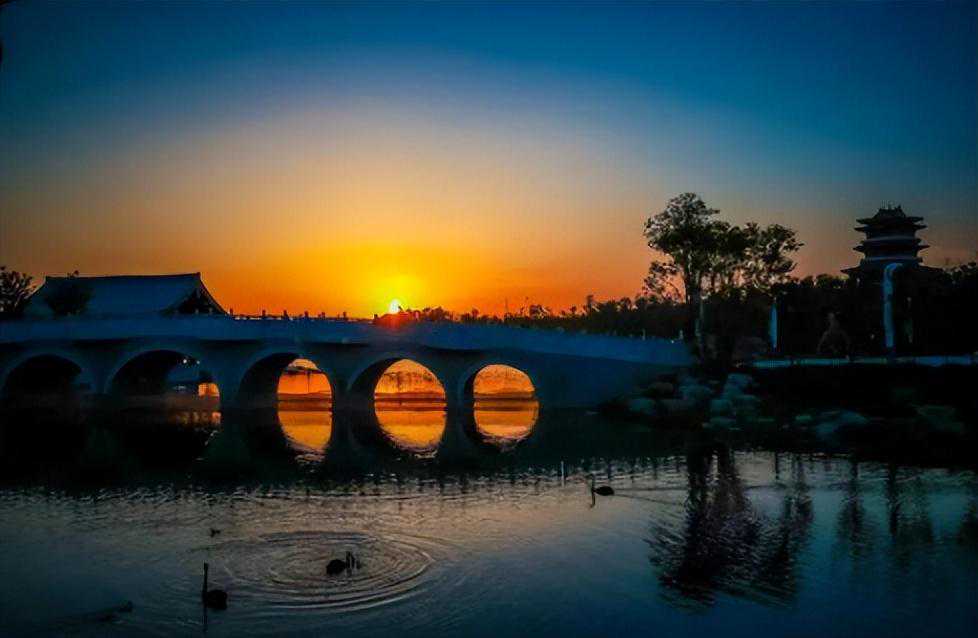 不仅可以看到不远处拱桥上的美妙投影
