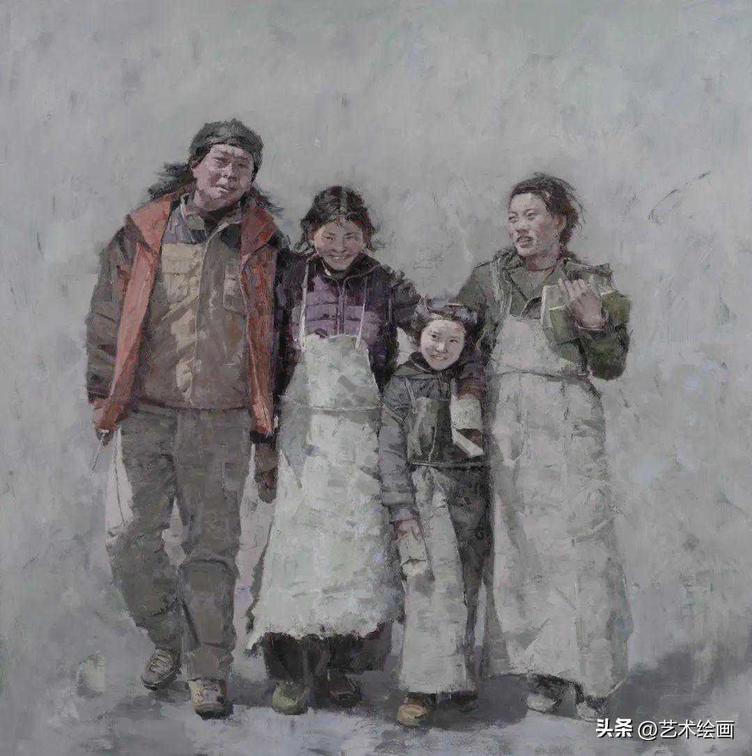 张鲁(山东)《拾贝工》油画160cm×160cm