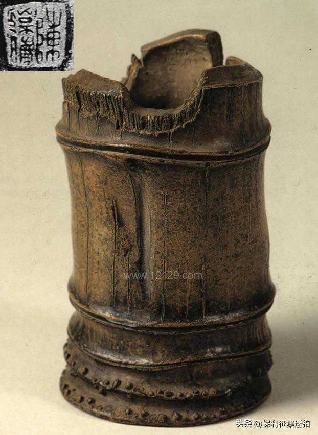-通高12.4cm,口径7cm-笔筒内底部有篆书“陈鸣远”三字方形戳记。
