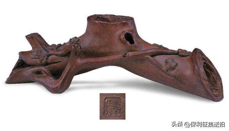 51,明末清初陈鸣远製紫砂梅枝笔架