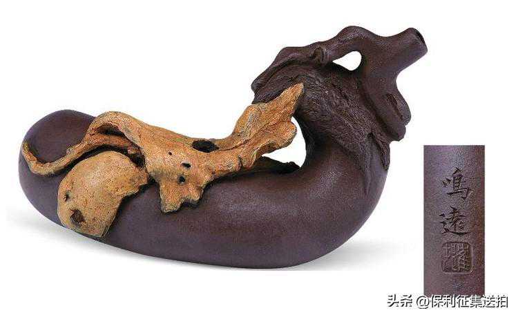 -高6.8厘米,长15.2厘米-壶底有“鸣远”行书刻款,“陈鸣远”篆书阳文方印。此壶现藏上海博物馆。