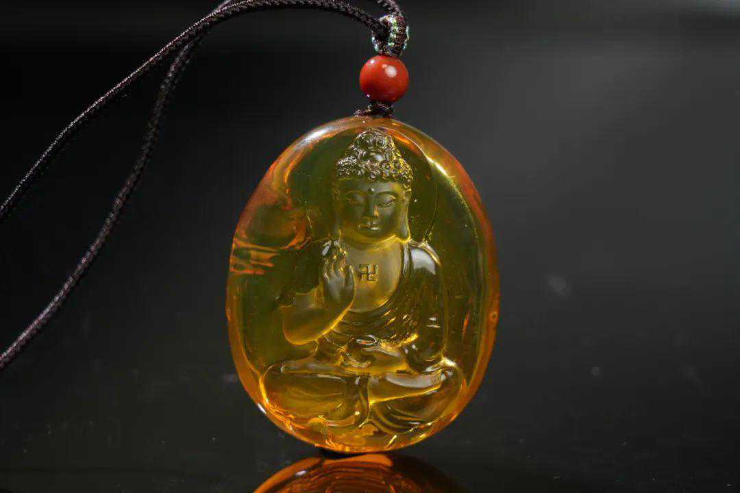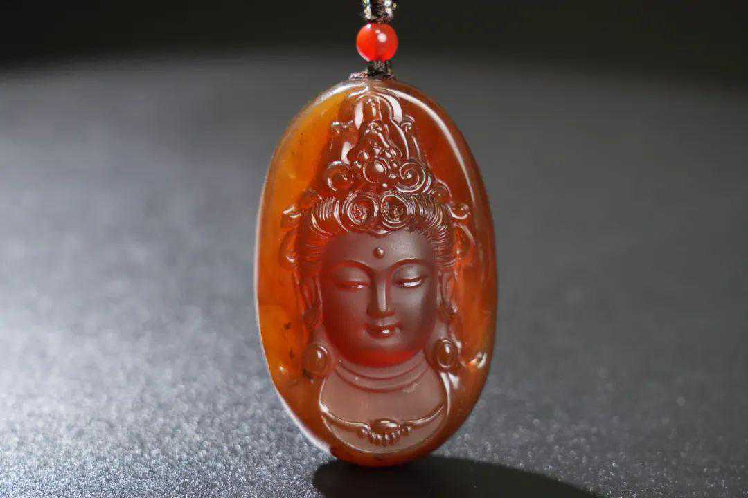缅甸蓝珀观音挂件