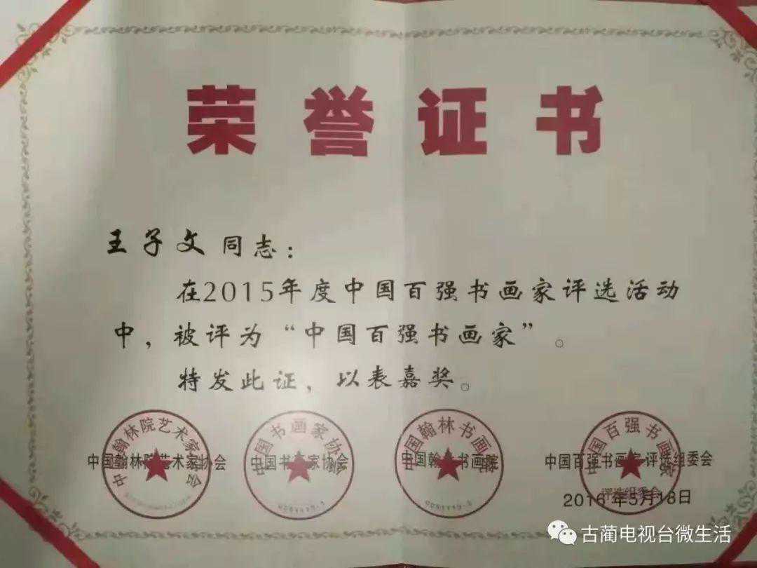 2015年参加中国百强书画家比赛,被评为百强书画家,作品在河南安阳中国文字博物馆入展;