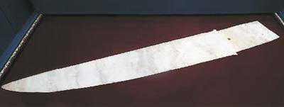 玉戈在商代玉器中是王权礼制的典型代表。此次展出的商代大玉戈出土自湖北省武汉市盘龙城遗址李家嘴3号墓,长94厘米、宽11厘米,是目前已知商代玉戈中最大的一件。