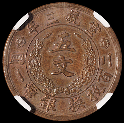 第八件、【宣统三年大清铜币五文】
