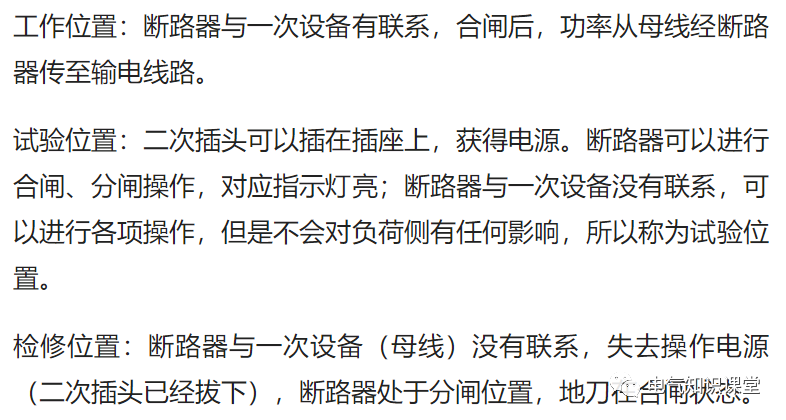 (5)高压开关的工作位置、试验位置、检修位置: