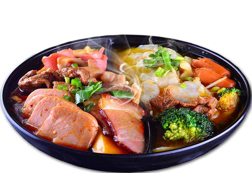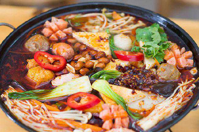 烫菜的先后顺序是,一般肉丸肉类先放,然后放豆制品,然后菇类的放豆制品上面,再放鸡蛋面粉丝一类的,最后青菜放最上面,因为青菜烫一下就可以吃了,这最上面,因为青菜烫一下就可以吃了,这个是按照菜系的烫熟时间来先后放的,保证烫出来的菜刚刚好,熟了而且不老,几分钟就烫好了,再装进碗里,然后菜上面加点小葱,香菜,蒜沫,端给客人吃就可以了。