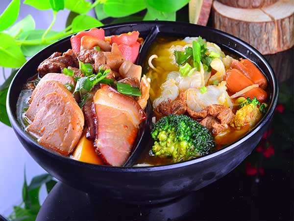 1.红汤调法:15斤骨头汤中,放入称好重量的材料粉,搅拌调味,大火烧5分钟即可!