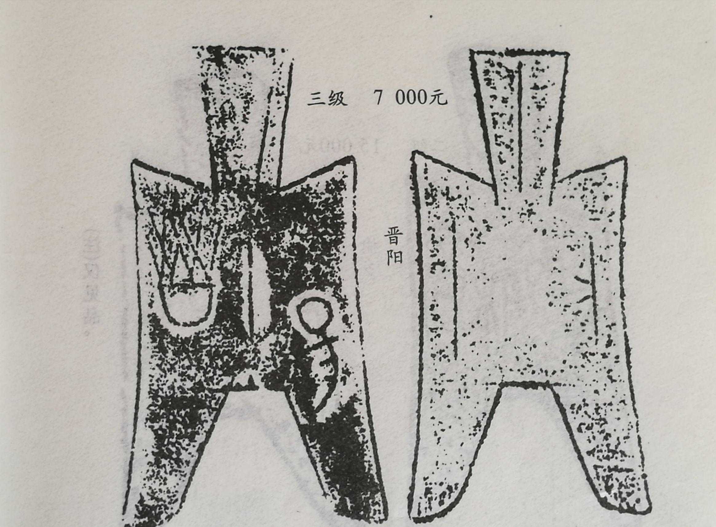 战国中晚期燕赵地区“晋阳半”耸肩尖足布,较多品种,美品,市场参考价3500元。