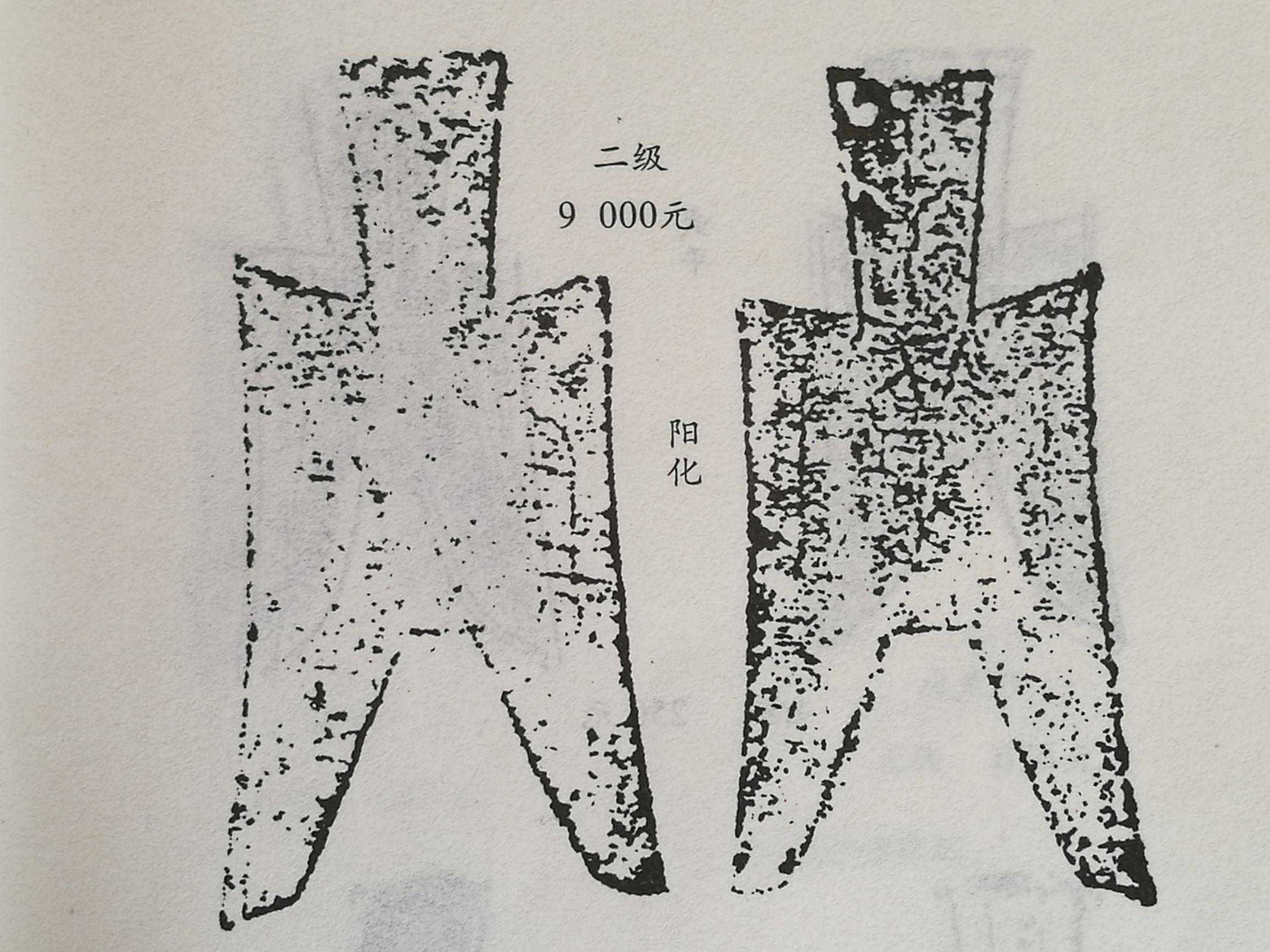 战国中晚期燕赵地区“阳化”耸肩尖足布,甚少品种,美品,市场参考价9000元。