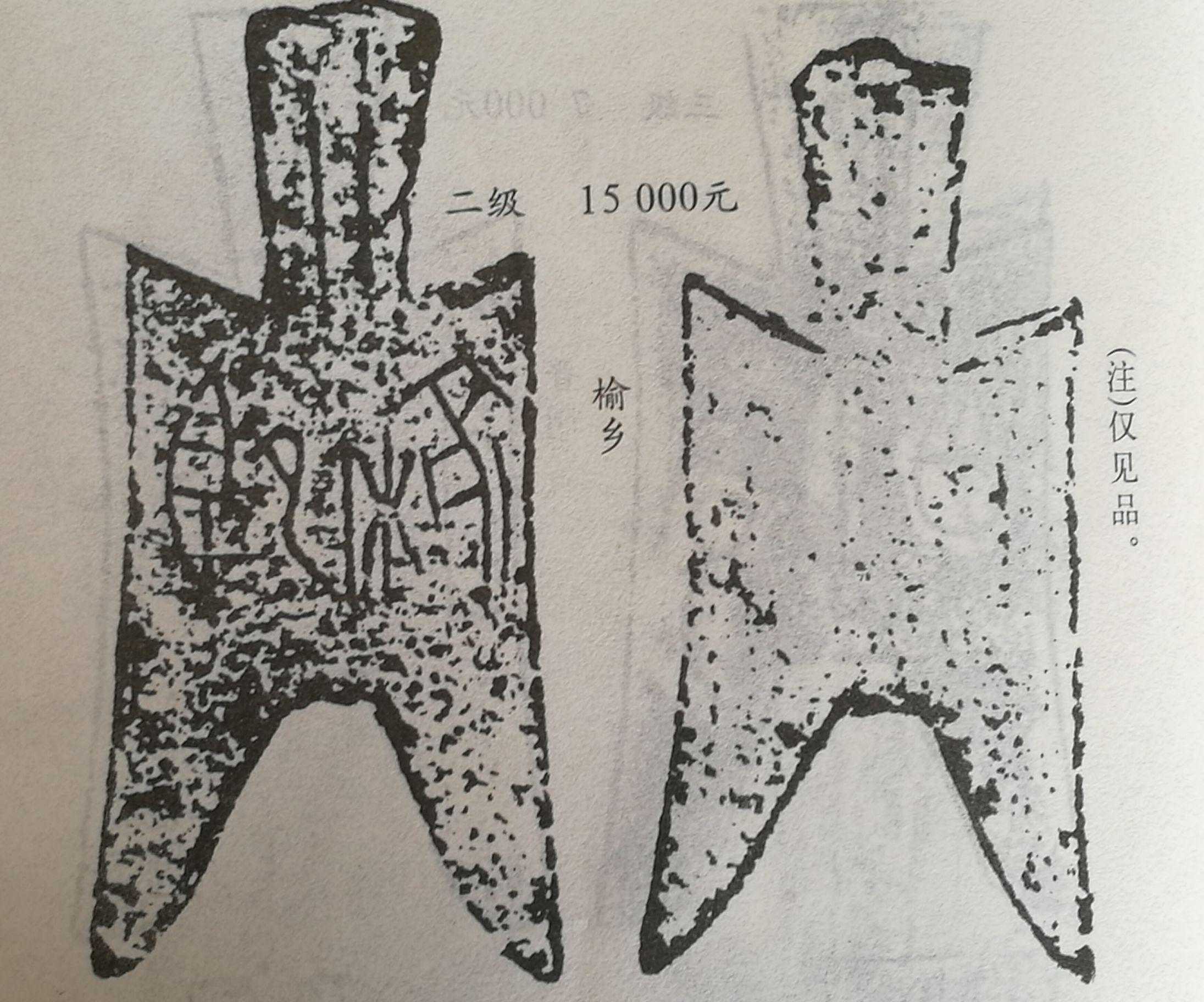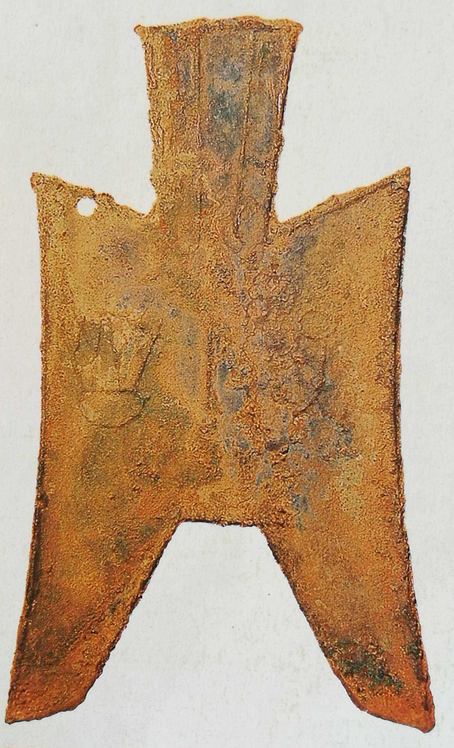 战国中晚期燕赵地区“榆乡半”耸肩尖足布,仅见孤品,市场参考价30万元。