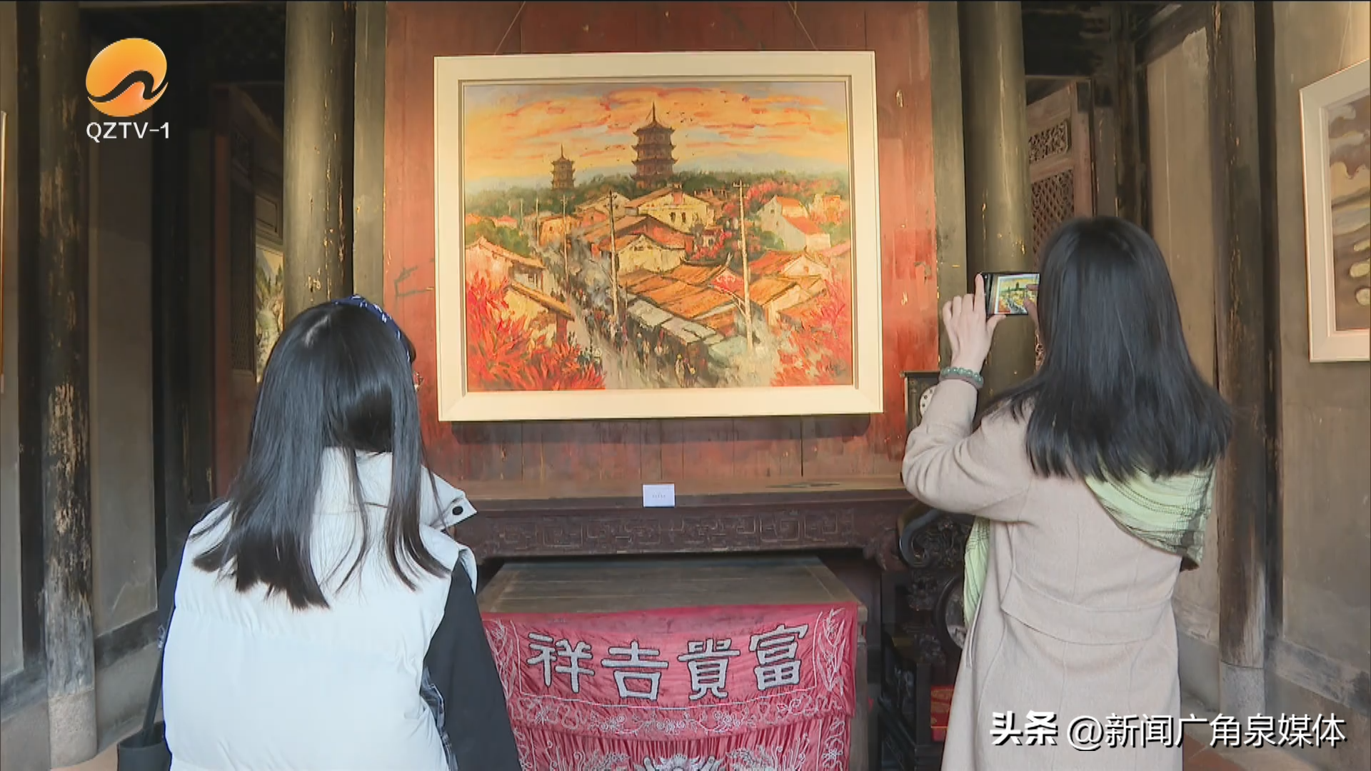 《古城祥云》《霞染刺桐城》《宁静的泉州湾》《闽南红》《钟楼细雨》……在市区后城旅游街140号闽南古大厝里,集中展示了泉州市知名油画家彭传芳近50幅本土优秀油画作品。参观者们在律动变幻、虚实结合的油画作品中,感受泉州文化的地域特征与审美特质,体会画家对故土的理解与感悟。