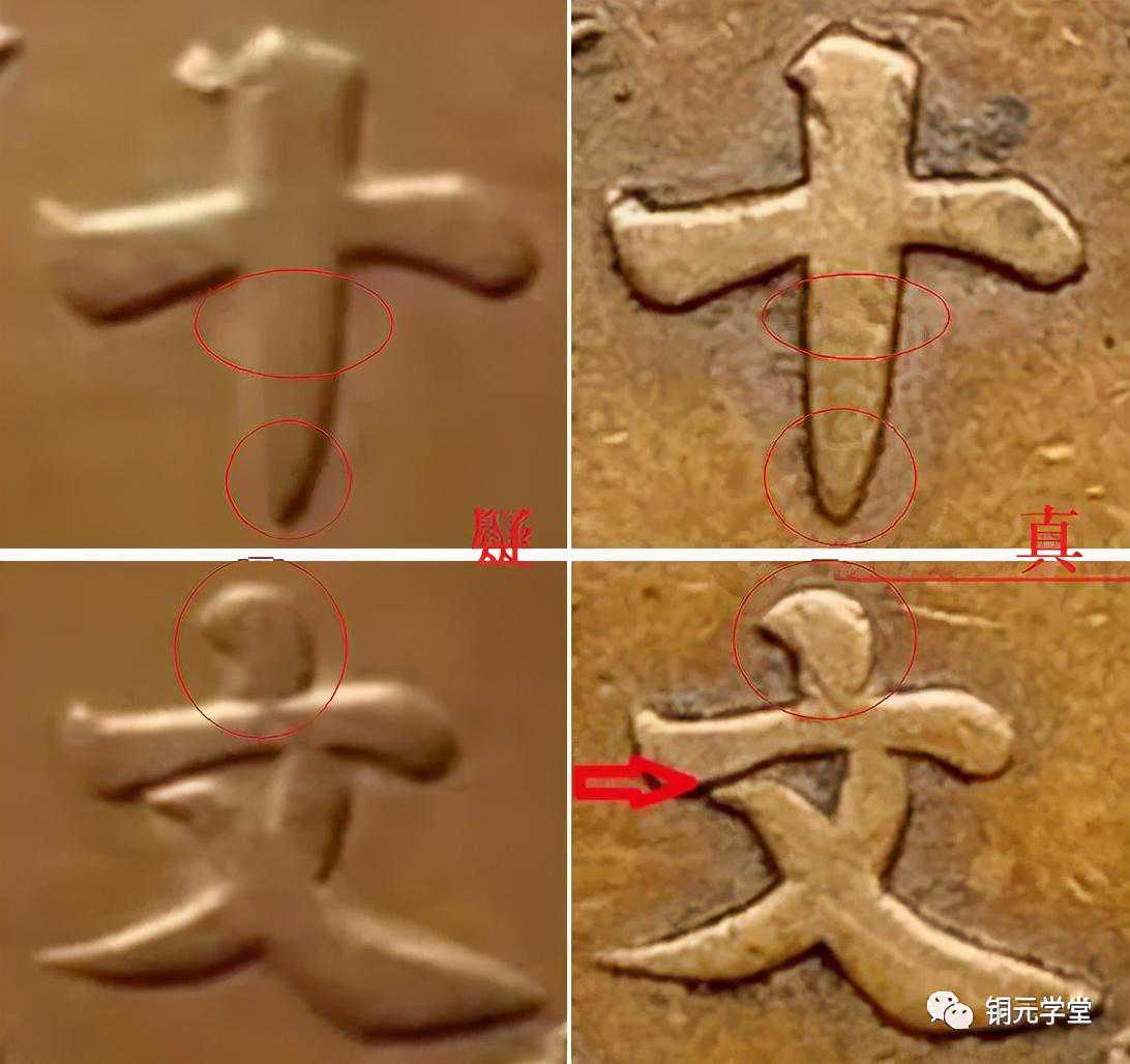 这枚我们首先看版,离文右洞,然后继续看真品和比对文字: