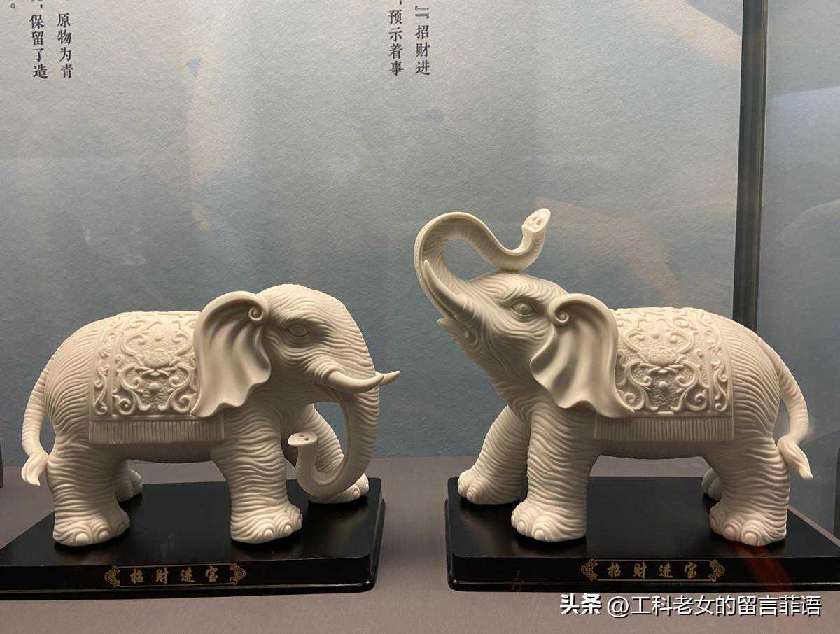 国博“德化瓷”展上有一组动物,除了生动可爱外,还都具有满满的寓意——以貔貅表示招财进宝,以奔马表示奋进,以大象表示事业稳健,以狮子表示势在必得……。