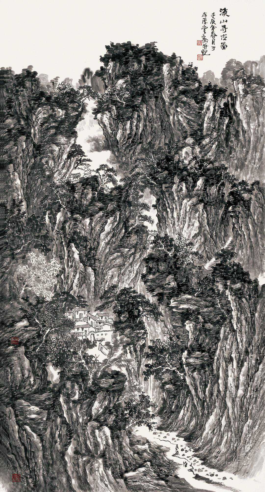 他的画从形式结构到主题内容,都力求丰富,让厚重和境界达到一个统一高度。他不能不说是一位在笔墨境界上惨淡经营的苦行僧。他的画和做人一样含蓄、内敛,没有丝毫的浮躁心情,他所营造出的山水家园,充溢着纤尘不染的执着和虔诚。他也不像许多画家急于借作品的个人风格化图式而扬名于世,获得丰厚的物质财富。反之,他象一个骑着毛驴,背着葫芦,手捏药锄置身于山林中的隐士,一味在艺术的深山访道修行。从而获得一种精神的丰满与自由。