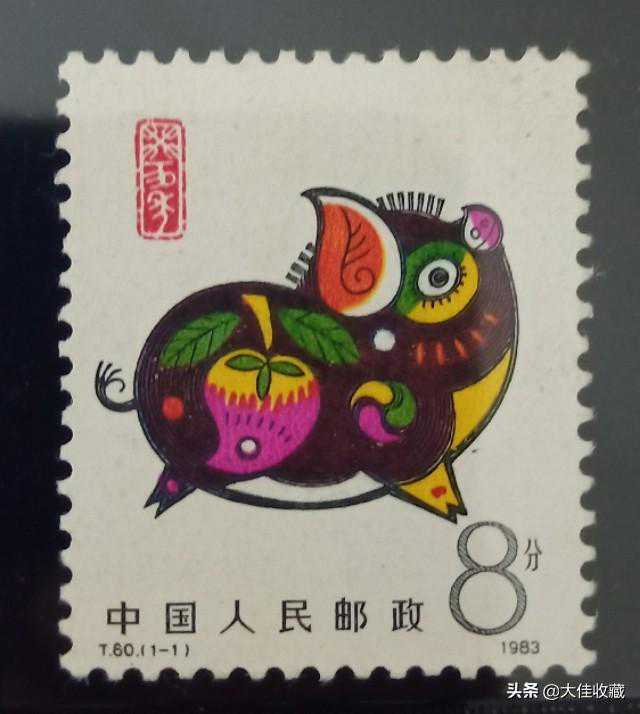 1983年生肖猪,发行量1275万枚,面值8分,目前市场价格单枚大概在50元左右。