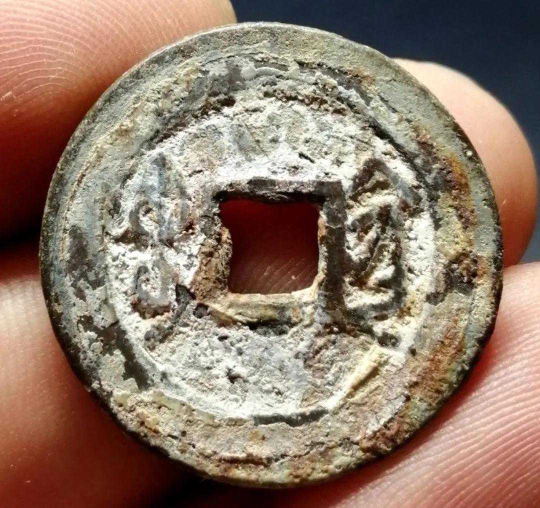 大家先看一下这个钱的通字,这个钱的通字写得非常有个性,两个点写的位置非常低,比通方头的地方还要低,这个是这个钱币的特点之一。