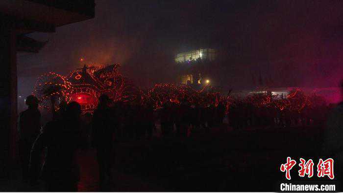 农历龙年正月春节假期间的夜晚,在湘粤赣三省交界处的湘南山村汝城县大坪镇南村,鼓乐齐鸣、礼花喧天,人群隐身在夜色中,舞动在空中的香火龙则愈发显得光耀璀璨。