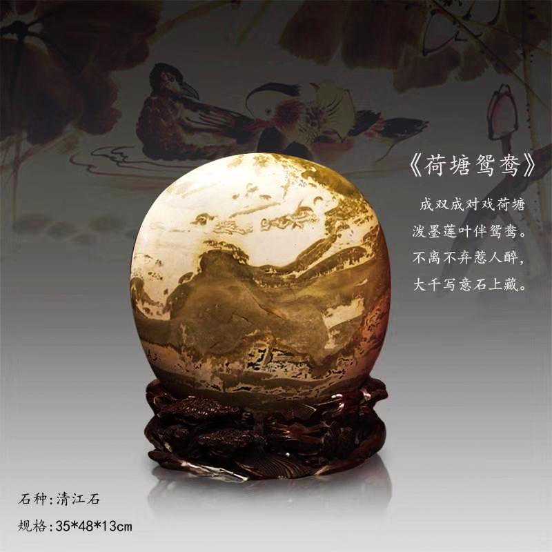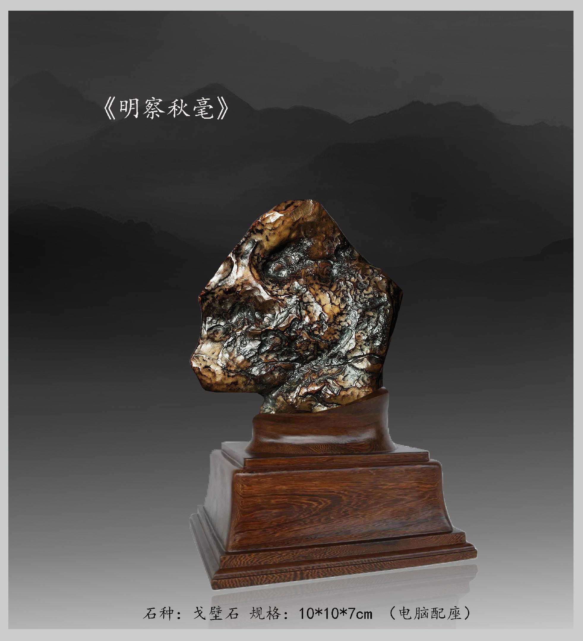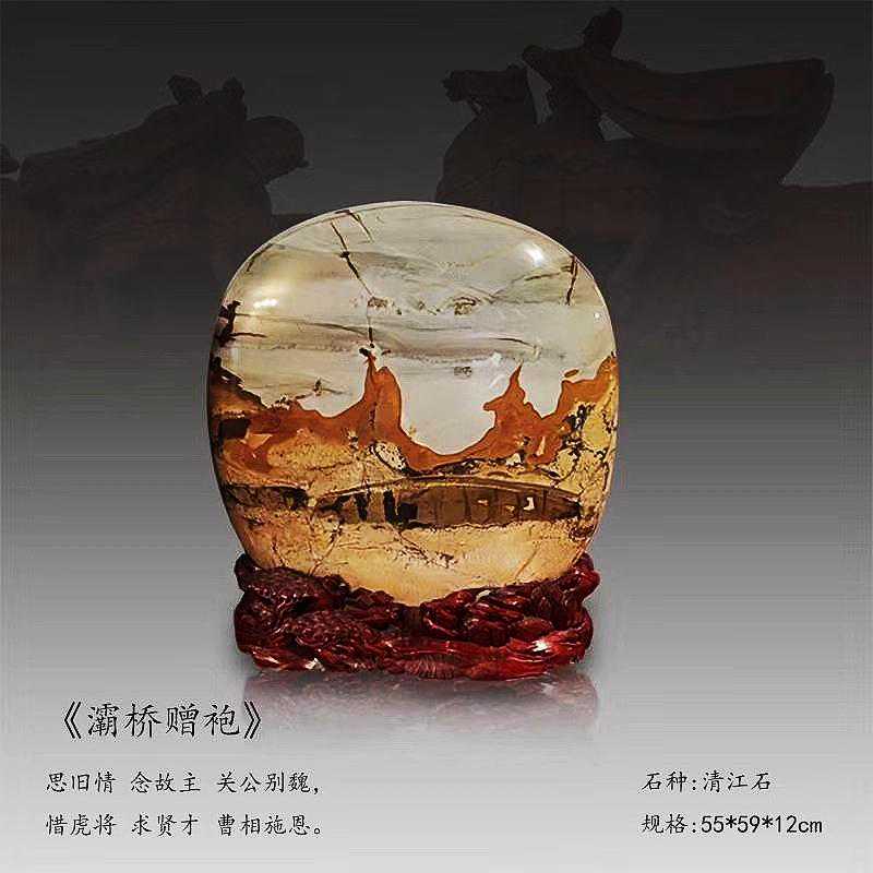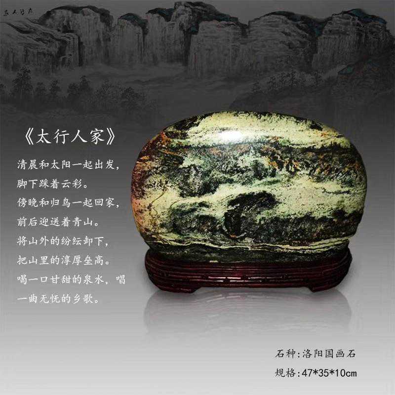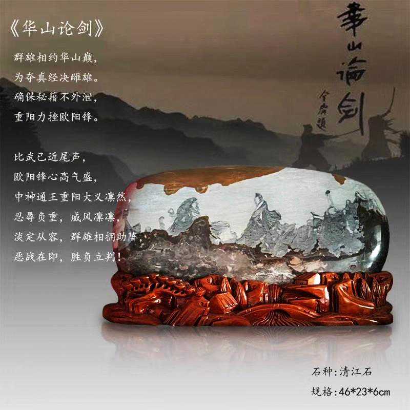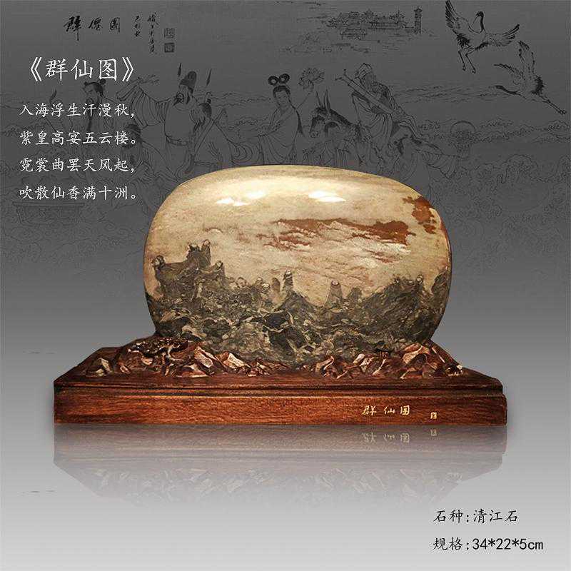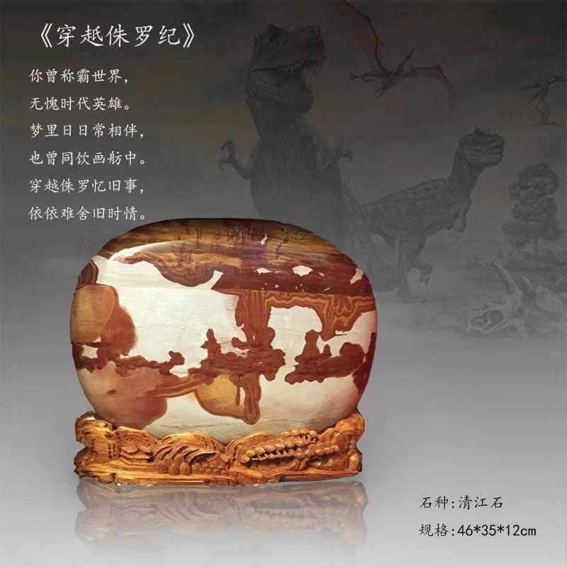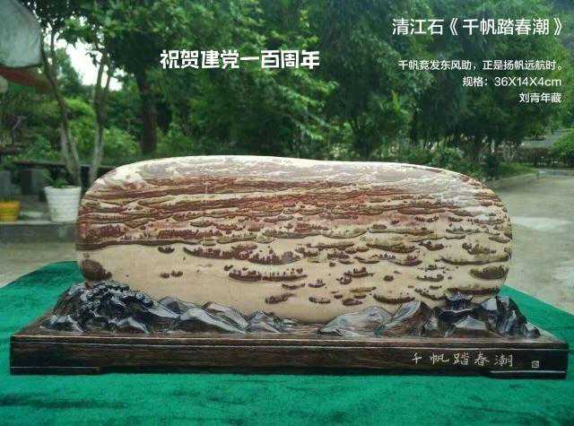 20年前,老刘又与奇石结缘,成为中石协创会时的初始会员,老刘收藏石头不计较石种,只要美,只要观赏主题自然天成、稀缺,形成难度大,能读出文化,品出故事,价高点也行,只要拿得动一定拿下,如果买不到手就会吃不香,睡不着。一次在洛阳石展上看到一方清江石,价高缺银子,就同卖方朋友协商,可否暂欠一部分,卖方欣然同意。石头拉回老家后,老刘立马带上早年收藏的纪念金币,急奔北京马甸市场转让还款。第二年还是在洛阳石展上,他又看上了一方大块清江画面石,后命名《群仙赴会》,因色彩、纹路都非常奇绝,寓意也好,可遇而不可求,但还是缺钱,没办法,老刘只好在石展上直接往美国打电话,让在美国斯坦福大学读研的儿子把他在学校贷的学费打10万过来,儿子说不买不行吗?老刘说全世界就此一方,我想买,错过了就再难遇上,钱以后可以再赚,同样的石头再找不来。儿子很孝顺立马给打了5万过来,老刘终于得偿所愿,满载而归。但后来老刘还是有点难受:为了自己的爱好不顾孩子的学习,我是不是有点太自私了。