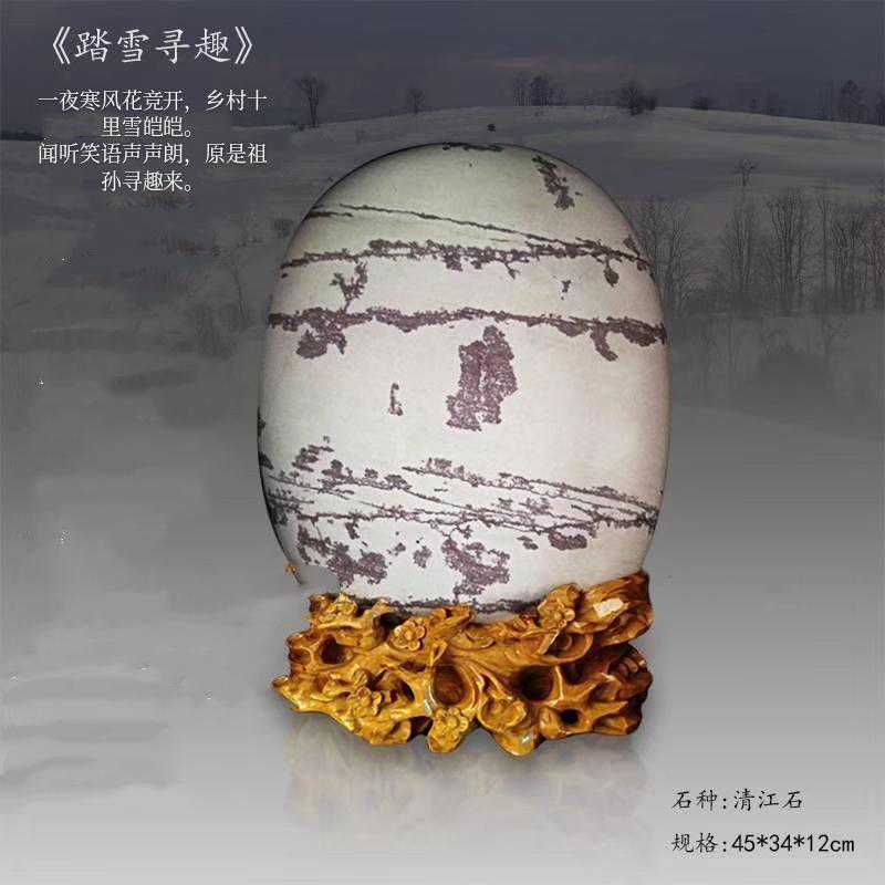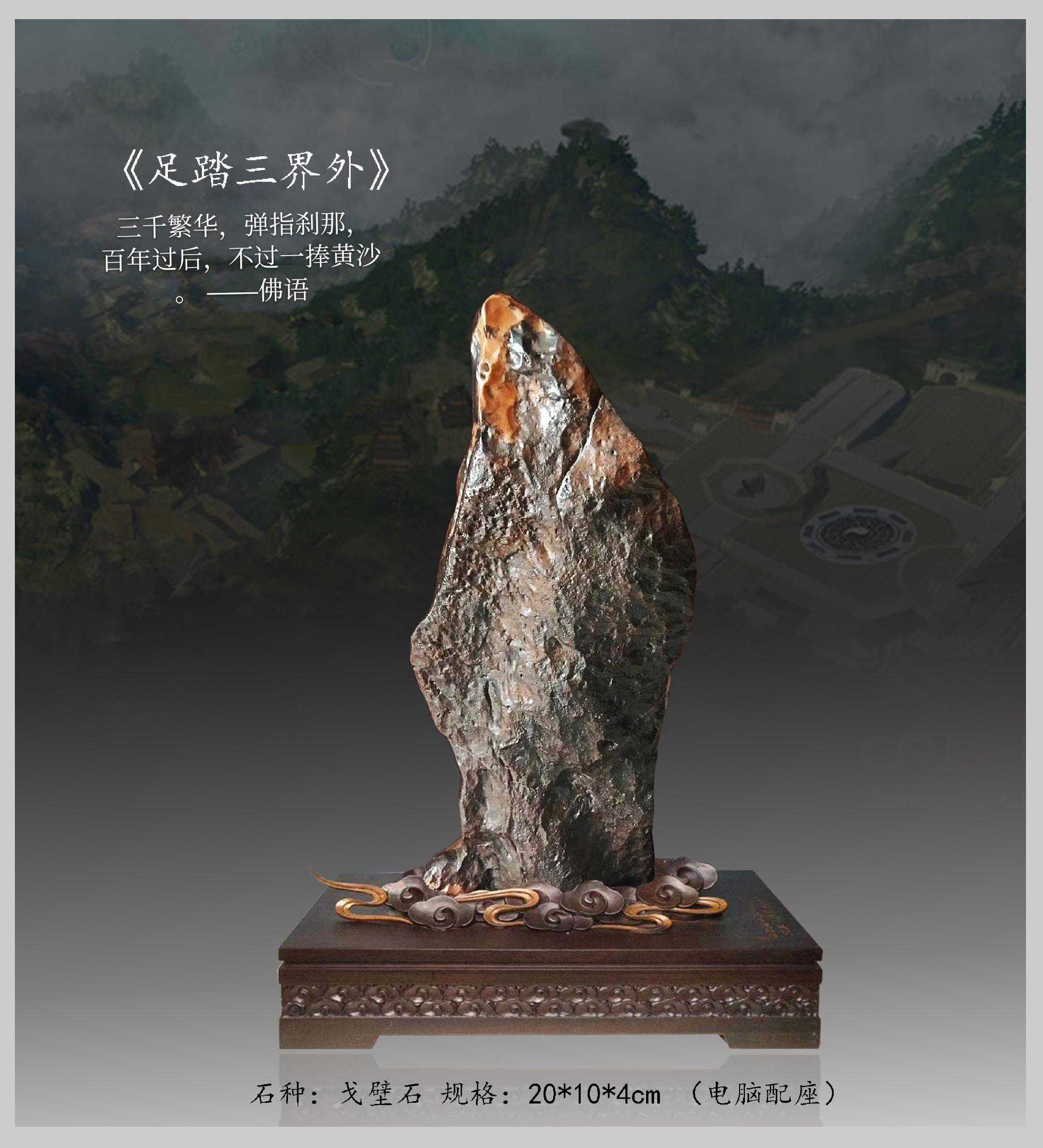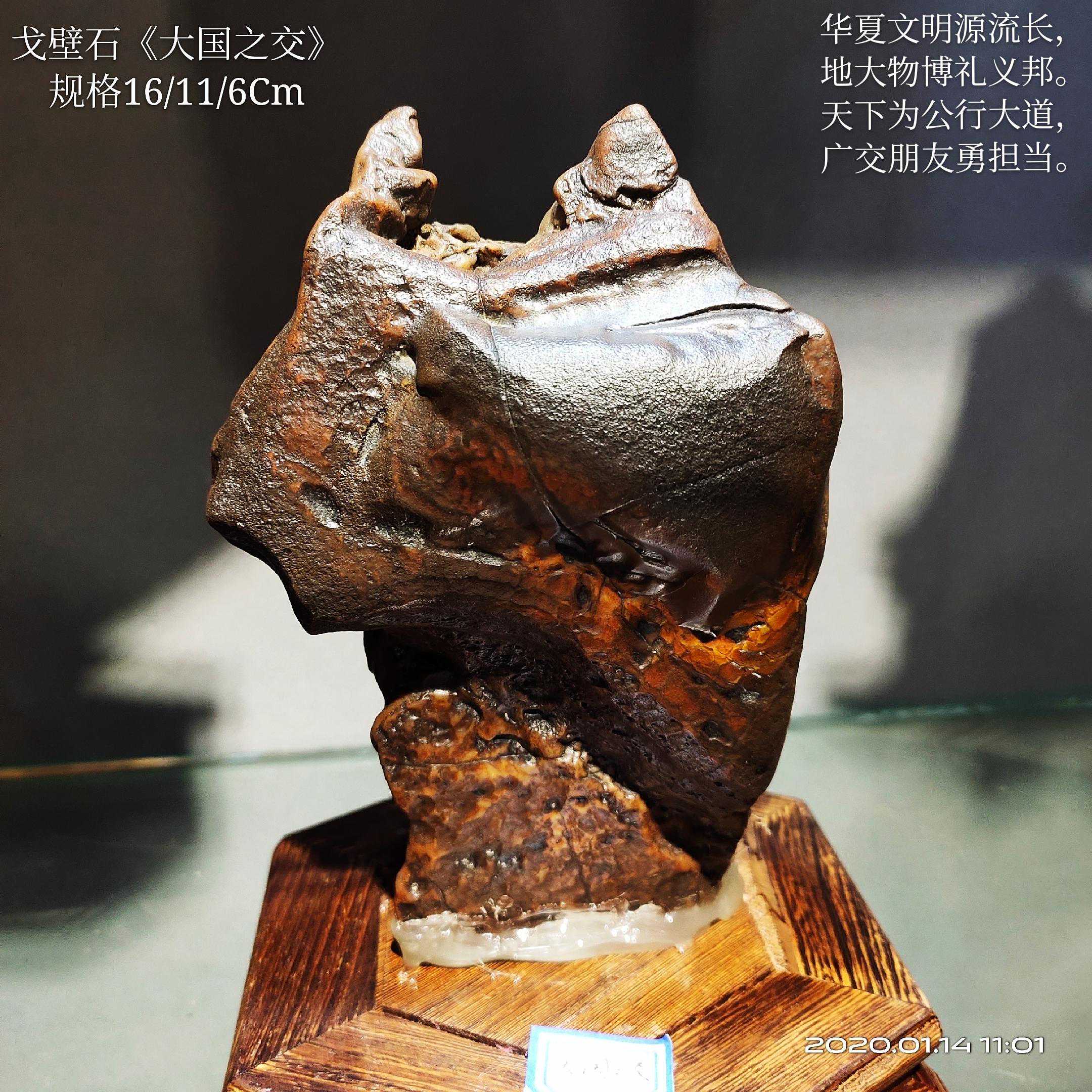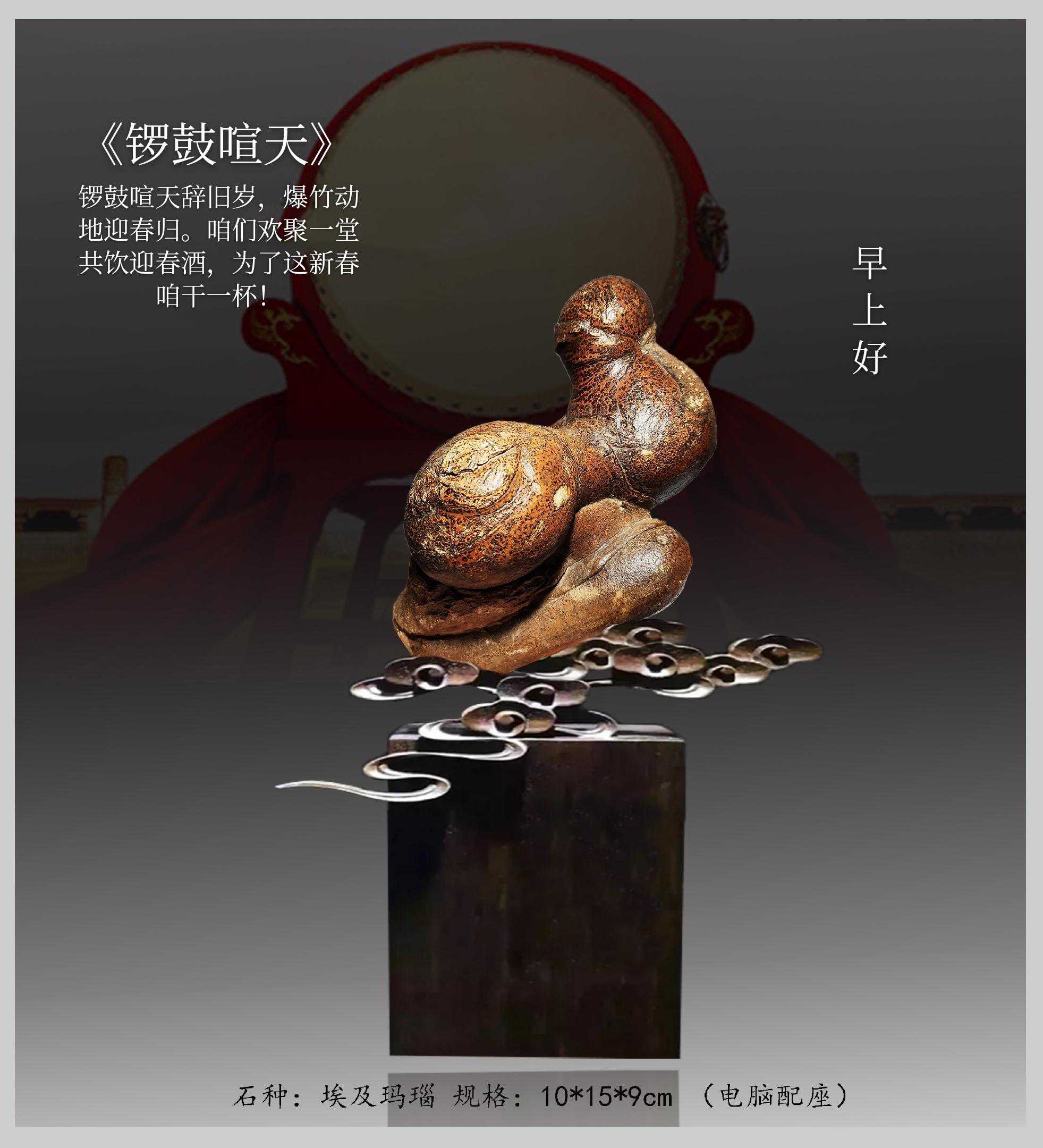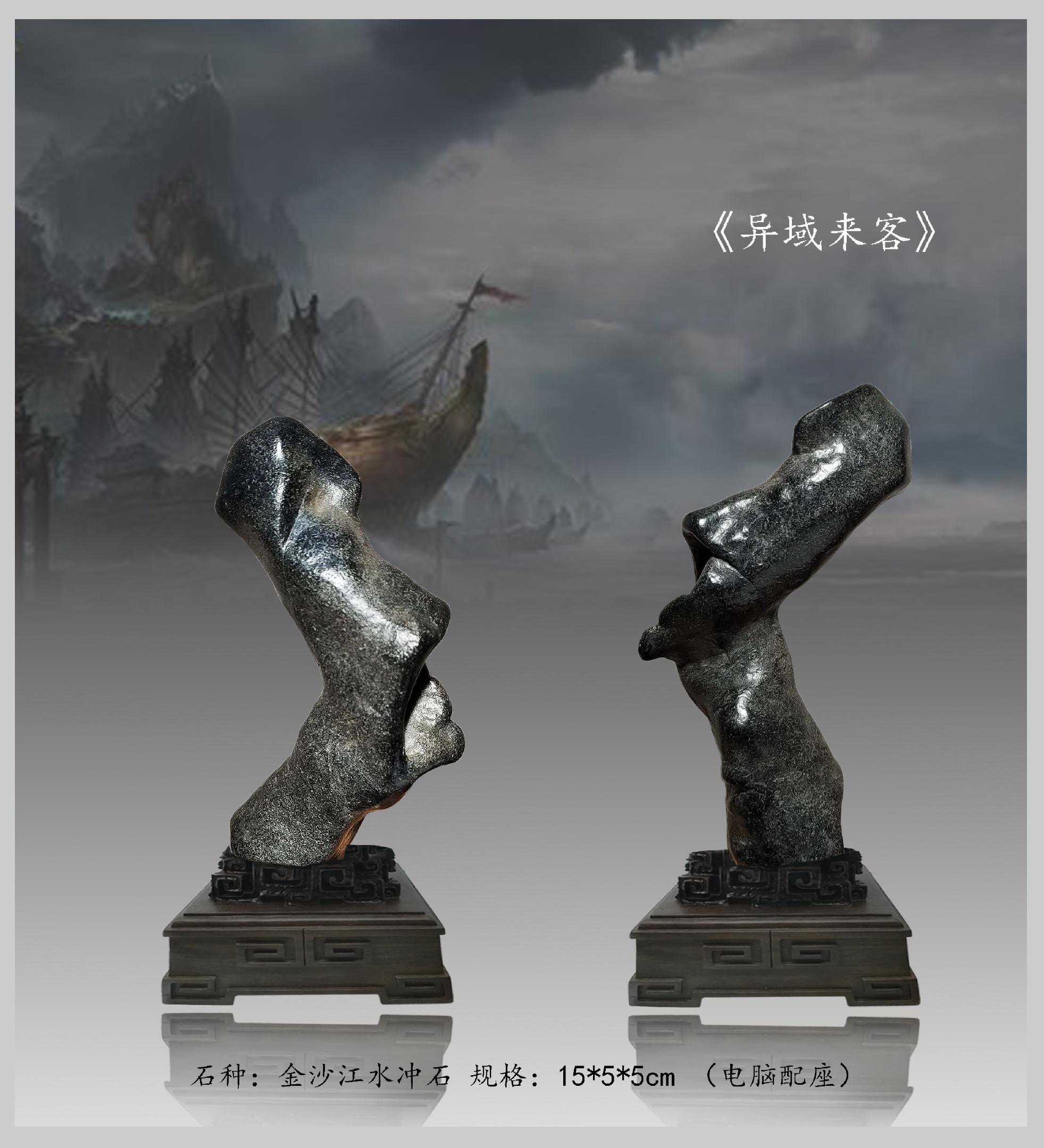 20年前,老刘又与奇石结缘,成为中石协创会时的初始会员,老刘收藏石头不计较石种,只要美,只要观赏主题自然天成、稀缺,形成难度大,能读出文化,品出故事,价高点也行,只要拿得动一定拿下,如果买不到手就会吃不香,睡不着。一次在洛阳石展上看到一方清江石,价高缺银子,就同卖方朋友协商,可否暂欠一部分,卖方欣然同意。石头拉回老家后,老刘立马带上早年收藏的纪念金币,急奔北京马甸市场转让还款。第二年还是在洛阳石展上,他又看上了一方大块清江画面石,后命名《群仙赴会》,因色彩、纹路都非常奇绝,寓意也好,可遇而不可求,但还是缺钱,没办法,老刘只好在石展上直接往美国打电话,让在美国斯坦福大学读研的儿子把他在学校贷的学费打10万过来,儿子说不买不行吗?老刘说全世界就此一方,我想买,错过了就再难遇上,钱以后可以再赚,同样的石头再找不来。儿子很孝顺立马给打了5万过来,老刘终于得偿所愿,满载而归。但后来老刘还是有点难受:为了自己的爱好不顾孩子的学习,我是不是有点太自私了。