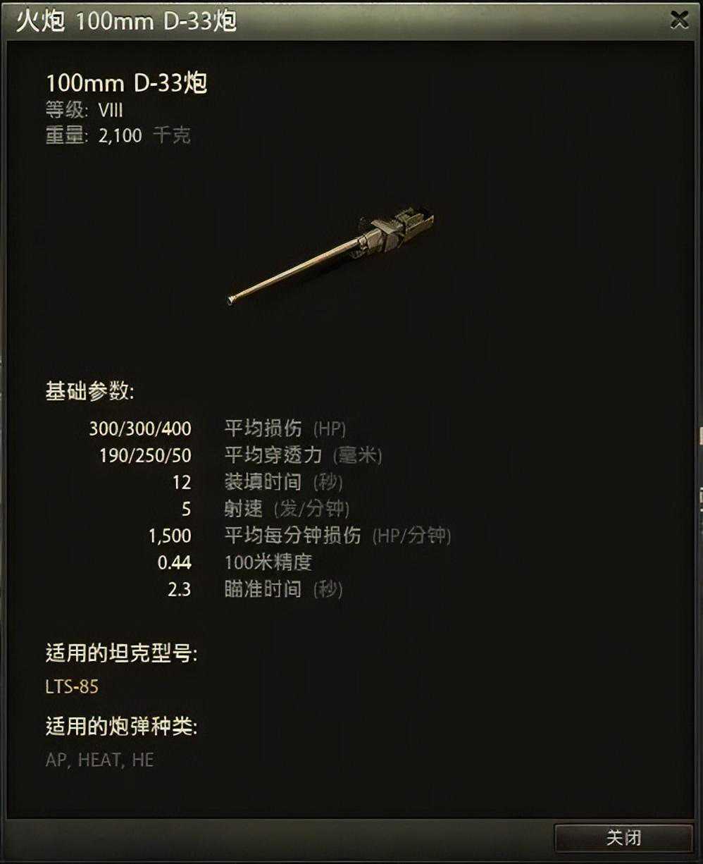 LTS-85虽然名字里有“85”,但它装备的其实是一门100毫米口径坦克炮,并且穿甲弹单发平均伤害达到了300点,这甚至超过了IX级的T-54轻型,也超越了所有的VIII级轻型坦克主炮单发伤害,甚至许多VIII级中型坦克的主炮单发伤害都没能达到这个水准。它的标准弹药穿深却为190毫米,对于VIII级轻型坦克来说完全合格,特种弹药也有着250毫米的穿深,足够对付它能遇到的敌人。
