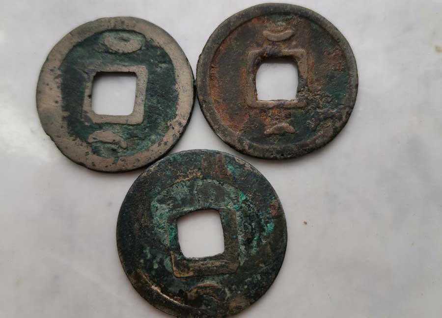 中期的开元通宝。主要指的是从唐高宗到唐武宗时期的铸造的开元通宝,这个时期虽然经历过安史之乱,中途还有其他铸造钱币的出现,但整体上开元通宝依旧保持着工整精美的铸造特点,所采用的铜材质量也不错,这个时期的开元通宝背后大多数有半月形的图案,形似甲痕,故又称“月痕开元”,有的还有星纹、星月纹等,版式很多,数量巨大,是开元通宝中数量最多的一种。