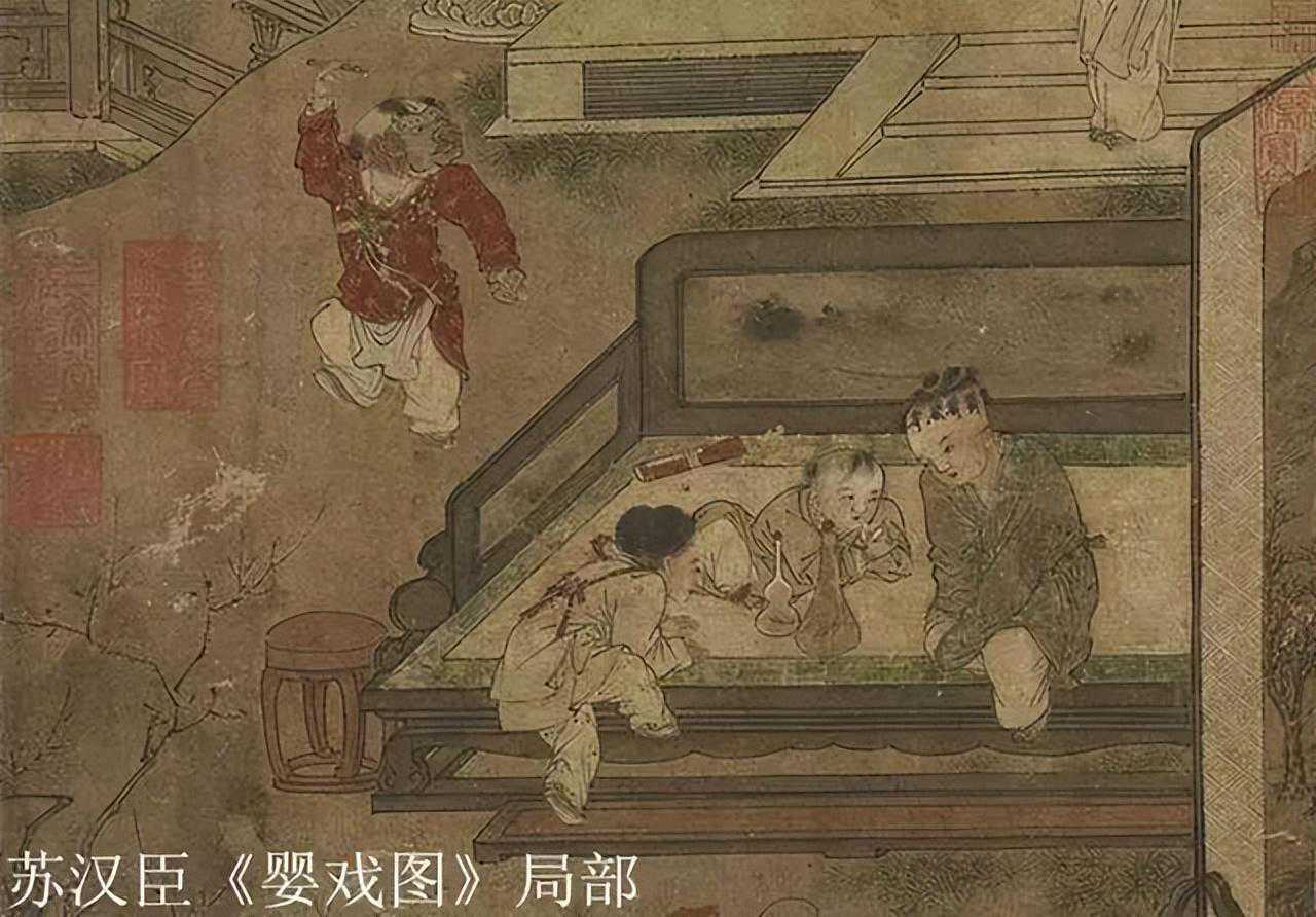 在宋代以后,婴戏图走向了成熟,并出现了大量以以儿时玩乐情景为题材的作品而苏汉臣所绘的《秋庭戏婴图》便是这类题材作品中的佼佼者。