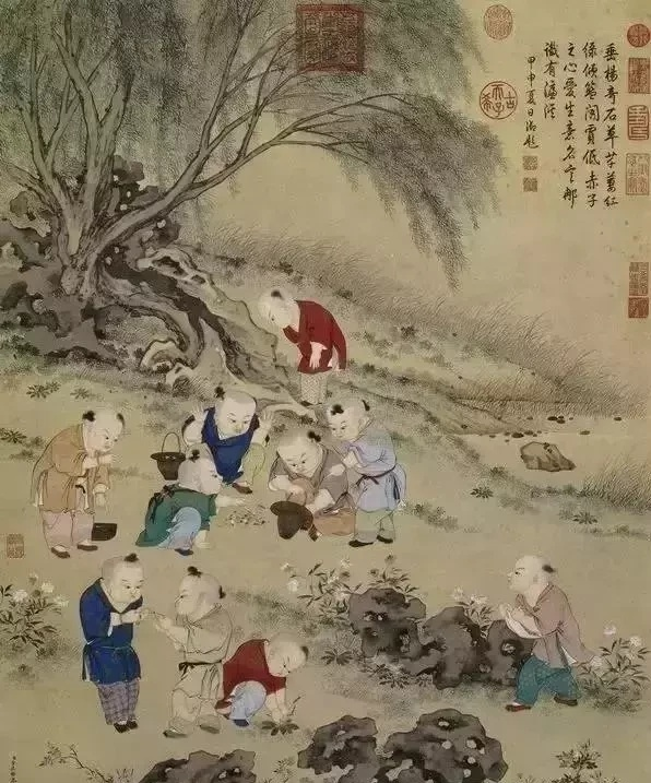 时代在发展,游戏的方式千变万化,而在古代,孩子们游戏的方式却也是多种多样的。有的“忙趁东风放纸鸢”,有的“挑促织”,有的“捉柳花”……除了文字的记载,还有绘画、图案的记载,也就是“婴戏图”。
