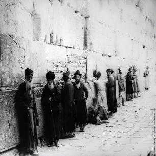 1880年,在耶路撒冷西墙或称为被哭墙的老年犹太人。