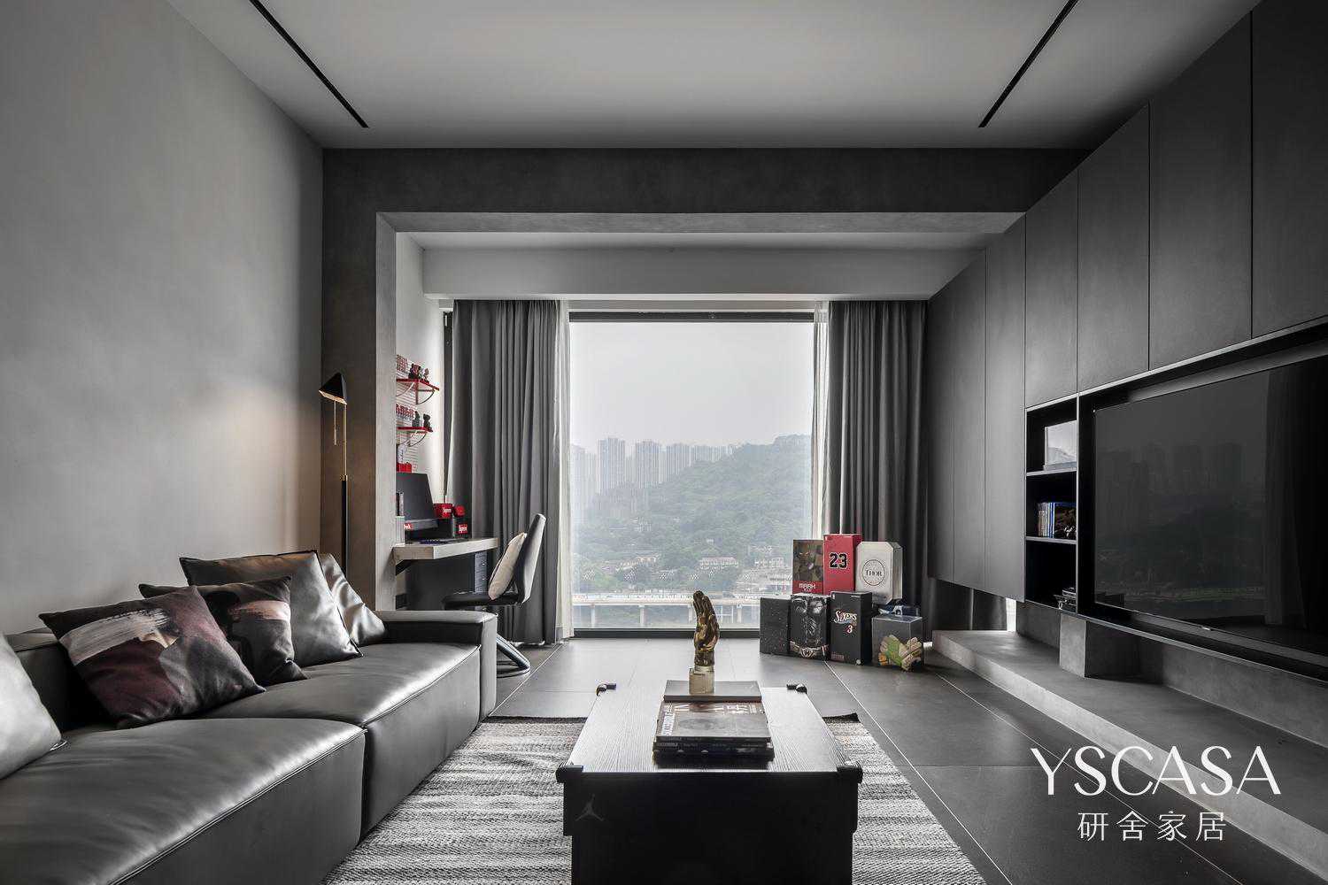 电视墙设置了整壁封闭收纳柜,承载了客厅区域的的收纳功能,