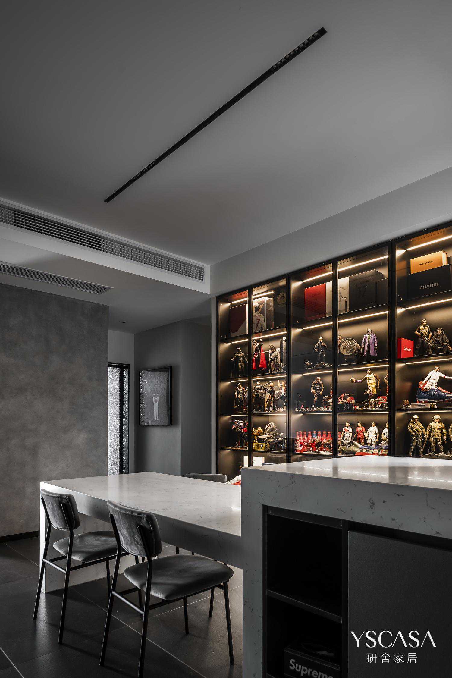 经过多次深入沟通,设计师围绕着业主的收藏爱好,展开了本案例的设计。除了各个空间的收纳补充,还需要在醒目位置设置比其他家庭更多的收藏展示柜,以满足业主与日俱增的“收藏库”。强化实用功能的同时,也注重家里的视觉层次感。为家打上一个私人“烙印”,让来到家里的每一位朋友,第一眼就认定“这就是我的家”。