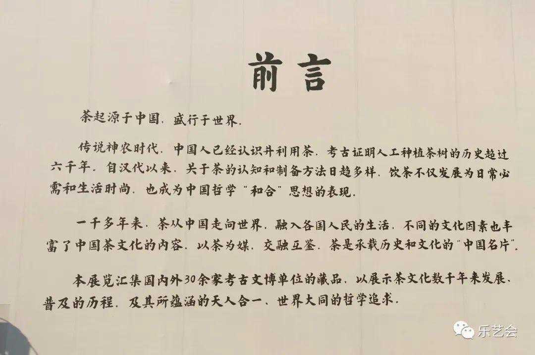 本展览汇集国内外30余家考古文博单位的藏品,以展示茶文化数千年来发展、普及的历程,及其所蕴涵的天人合一、世界大同的哲学追求。