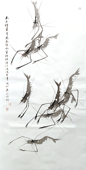 常言道:师傅领进门,修行在个人。在“黑白艺术领域”;也使他进一步领略了“白石虾”的艺术魅力,并一发不可收,成了他潜心研究、不懈追求!期间多次参加全国或省市的书画展并获奖,不断有作品被书画典籍所刊登或被业界收藏,而这些作品也都是变换不同题材的“白石虾”。