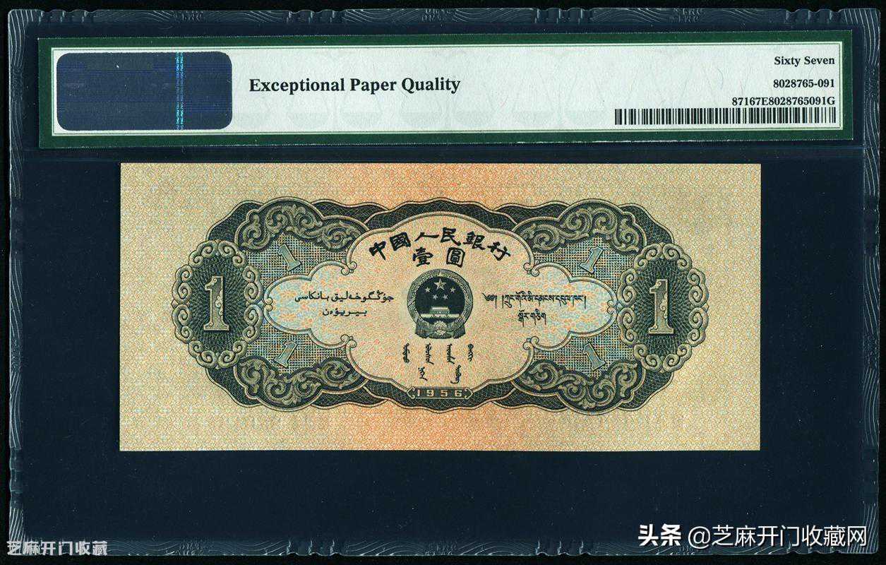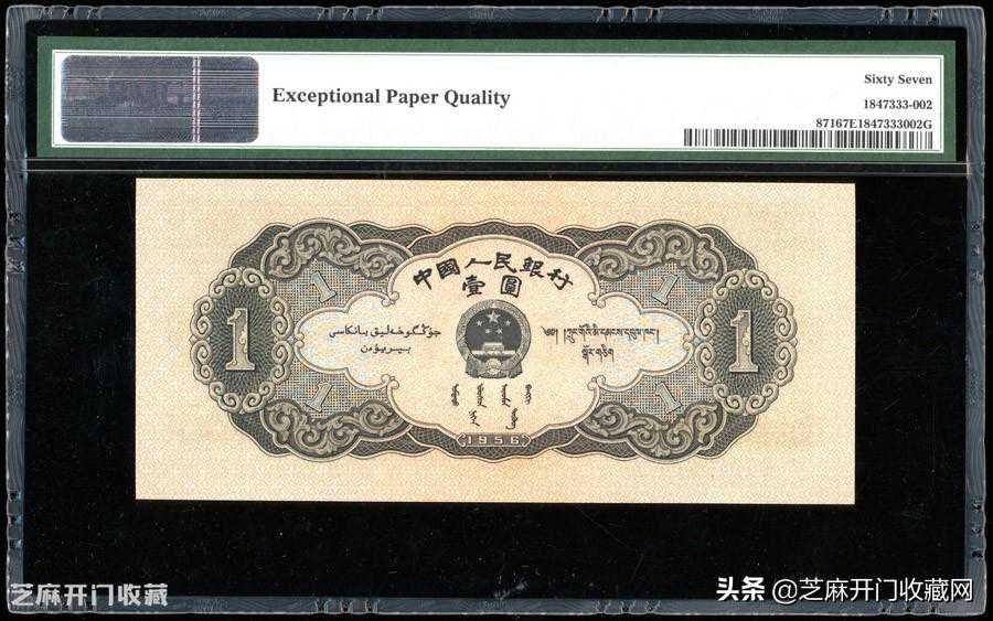 :第二版1956年黑一元PMG67EPQ,估价:RMB15000-20000,成交价格:RMB26750