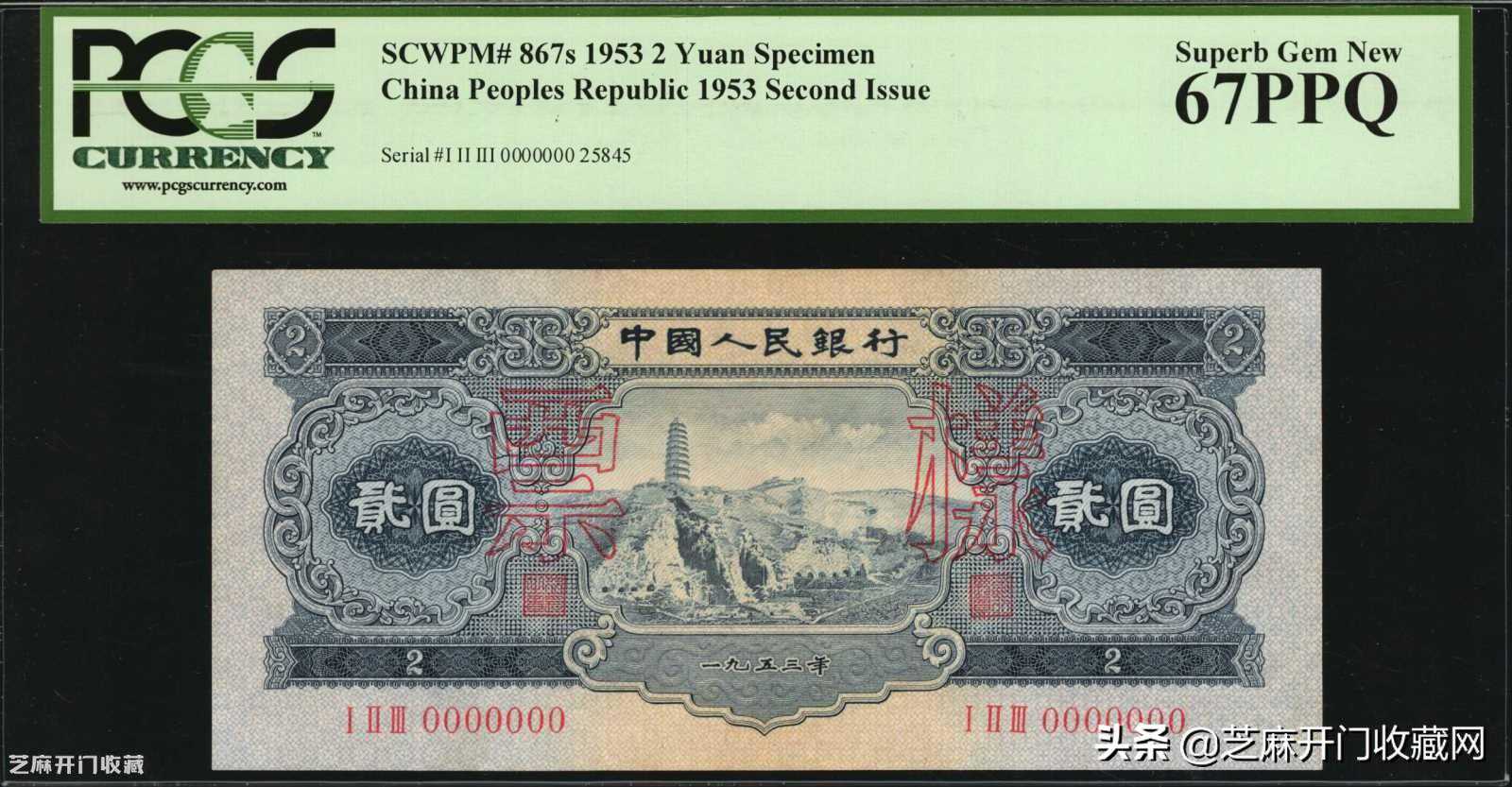 4:1953年第二版人民币贰圆。样张,估价:USD1500-2500,成交价格:USD2280
