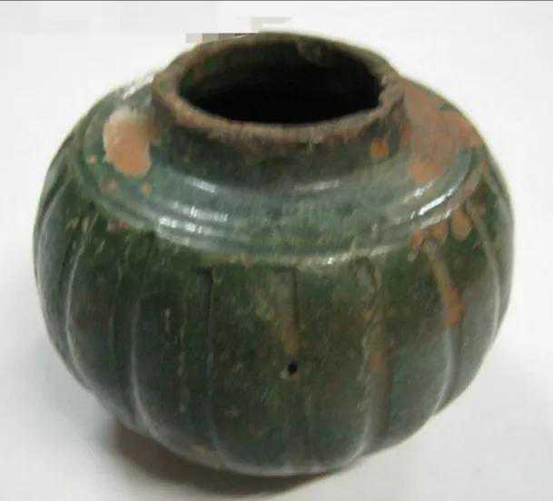 腰鼓罐,圆底与口大小相似,中腰鼓起。