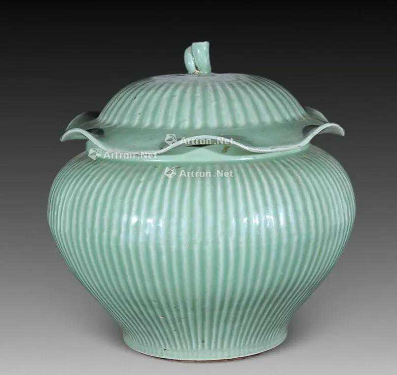 瓜棱罐,罐身有竖向凹沟。