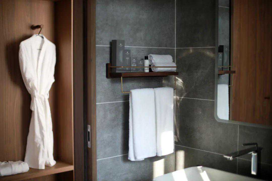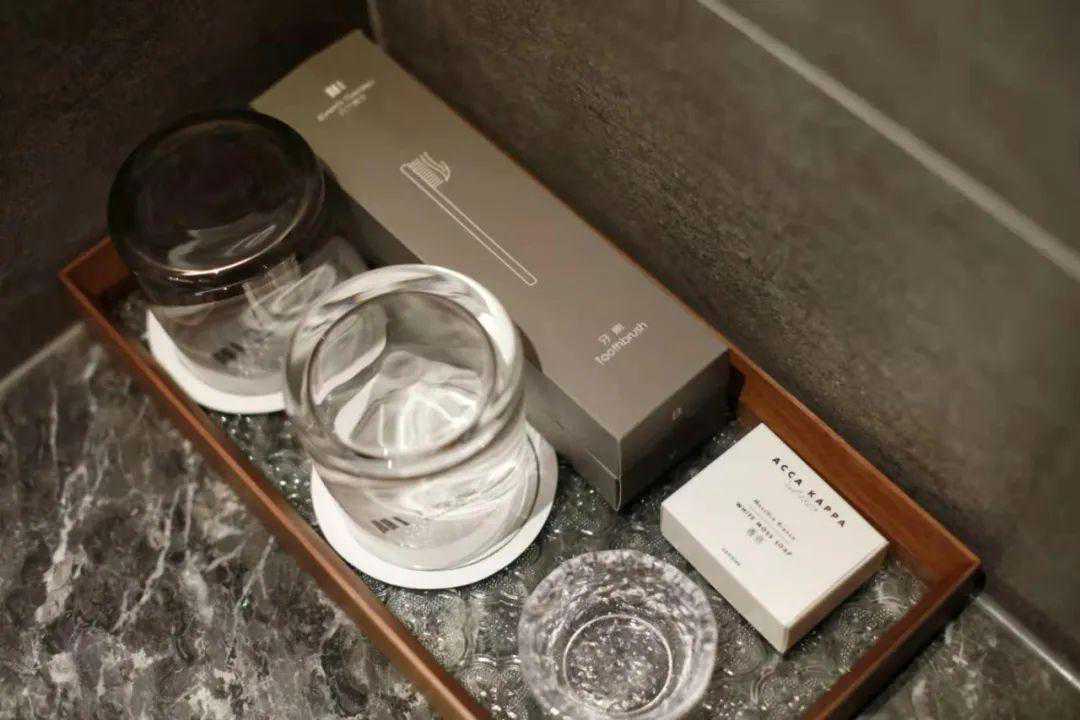 为了营造「家的氛围」,客房所有用品都是女主人和设计师一起精心挑选,如定制用品和一次性电动牙刷、来自希腊的品牌Cocomat的乳胶床垫和枕头、洗护用品选自有着百年历史的意大利品牌AccaKappa。每个客房还都配备了英国KEF保时捷设计款音箱,所有的床品都是全棉制等等。