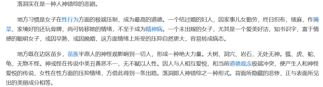 落花洞女很好理解,就是部落中只因向某个洞口望了一眼,某些未婚女子回家就开始不吃不喝,不久后死去脸上还带着笑容,部落认为这是女子和洞神结婚去了。