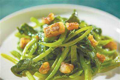 用黄花鱼做成的咸鱼炒芥蓝。