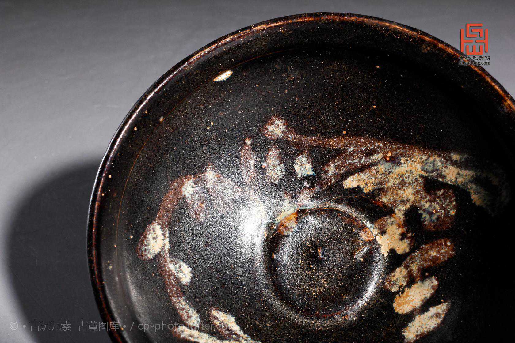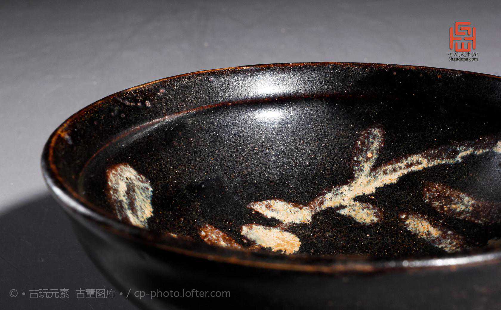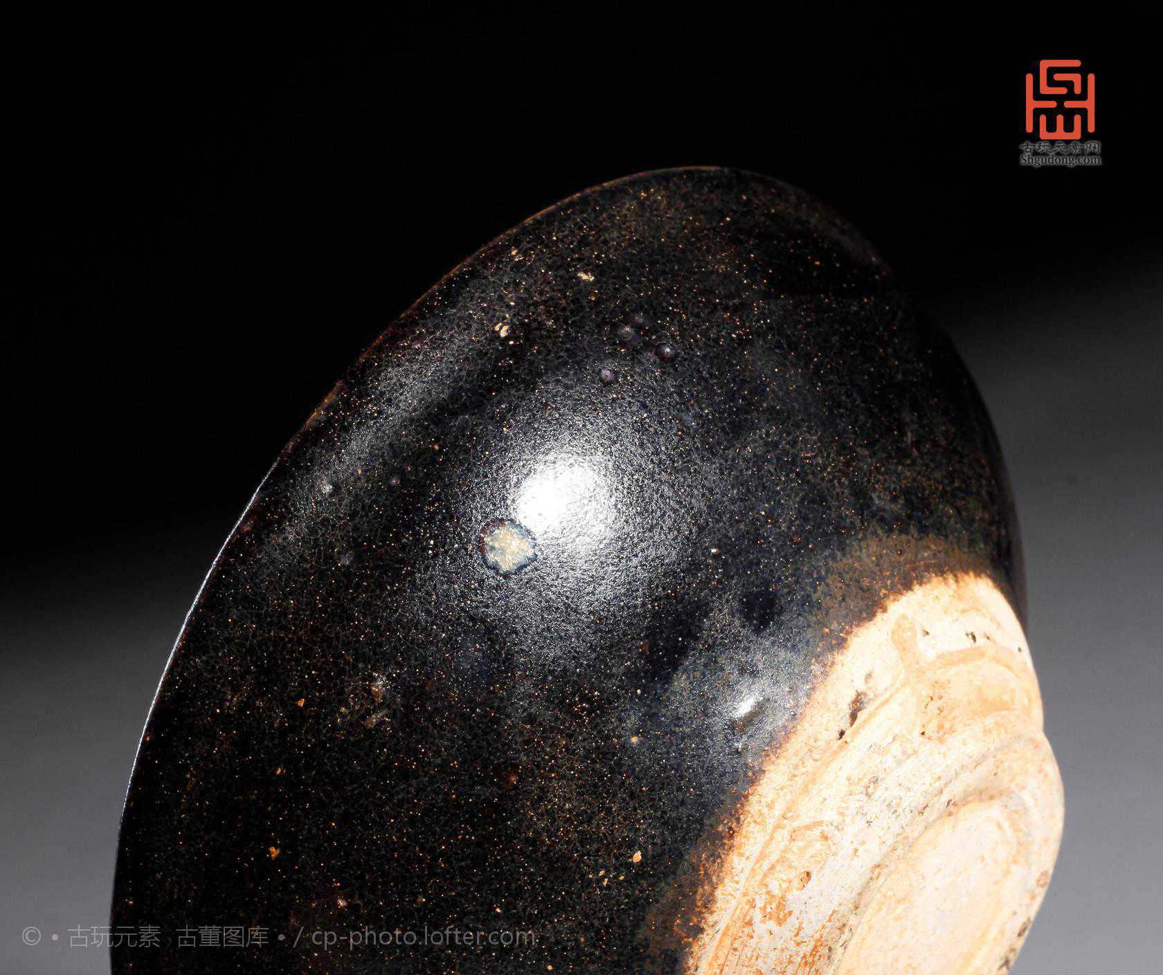 藏品说明:盏撇口,斜腹渐收,瘦底,圈足。外壁黑釉不及底,内施洒花黑釉,胎质较细腻,呈灰白色。“洒花釉”为江西吉州窑的代表品种之一,它是在黑色釉面上洒以黄釉,故称“洒釉”。此盏黑色釉面上点点黄釉晕散,营造出朦胧“月下梅影”诗意氛围,布局疏朗,清秀雅丽,富有禅道诗意。