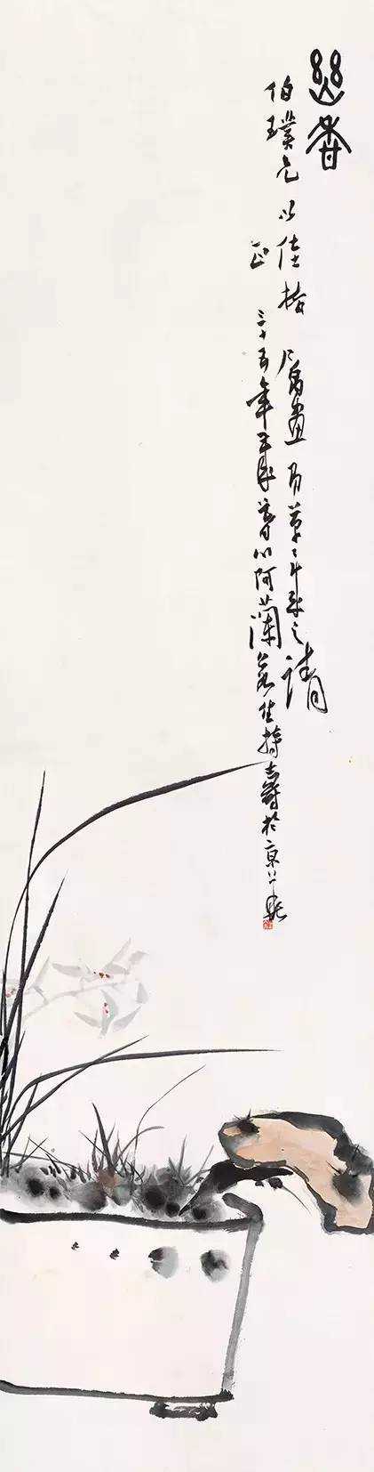 1958年纸本、设色、指墨146.6㎝×63.5㎝