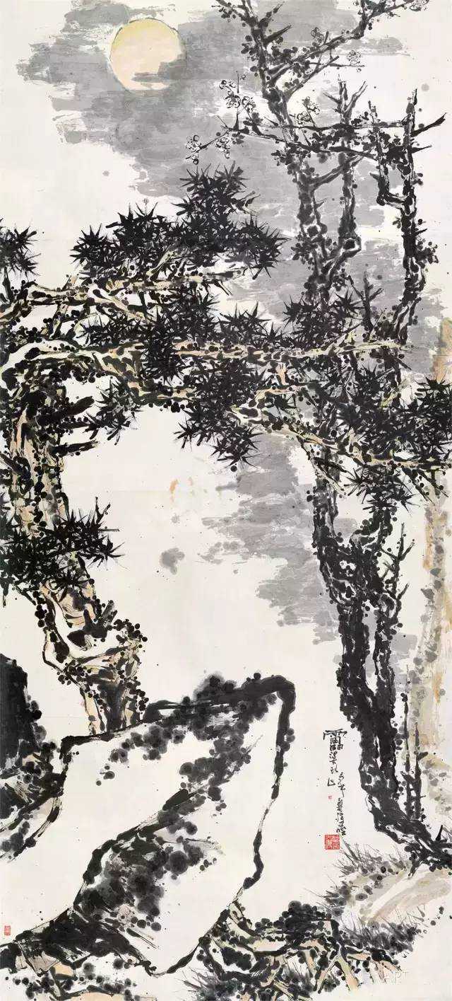 《松石梅月图》