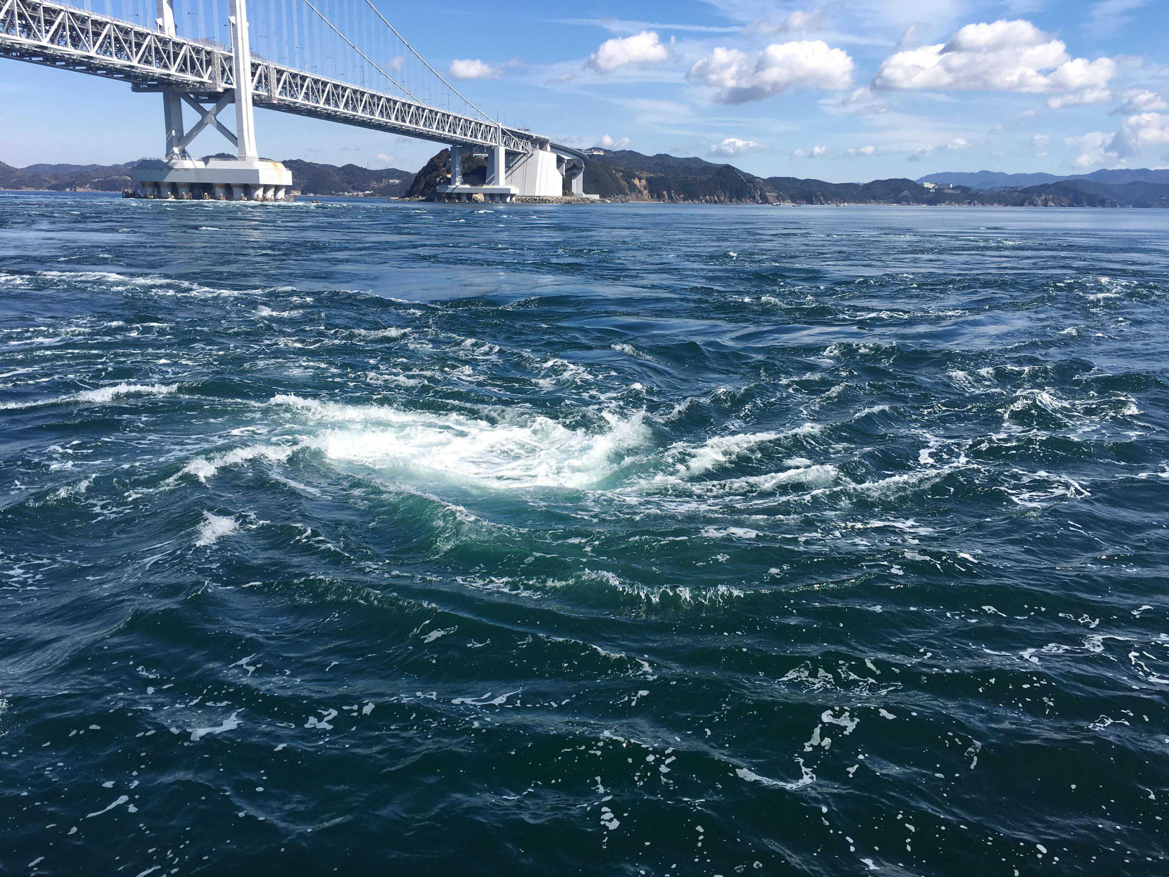 鸣门海峡是濑户内海的一个狭窄水道,以其巨大的漩涡而闻名,这些漩涡是由潮汐和地形共同作用形成的。站在诗岛山上,游客可以一览无余地欣赏到这一壮观的自然景象,感受到大自然的神奇魅力。
