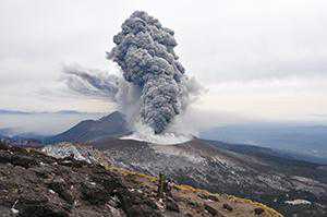 樱岛山位于阿伊拉火山口南侧,是一座世界闻名的活火山;火山的南侧则是阿塔火山口。樱岛山由于多次喷发,地形不断发生巨大变化,比如一百年前(1914年)的大规模喷发中,熔岩在岛屿和大隅半岛之间形成了一座陆桥。