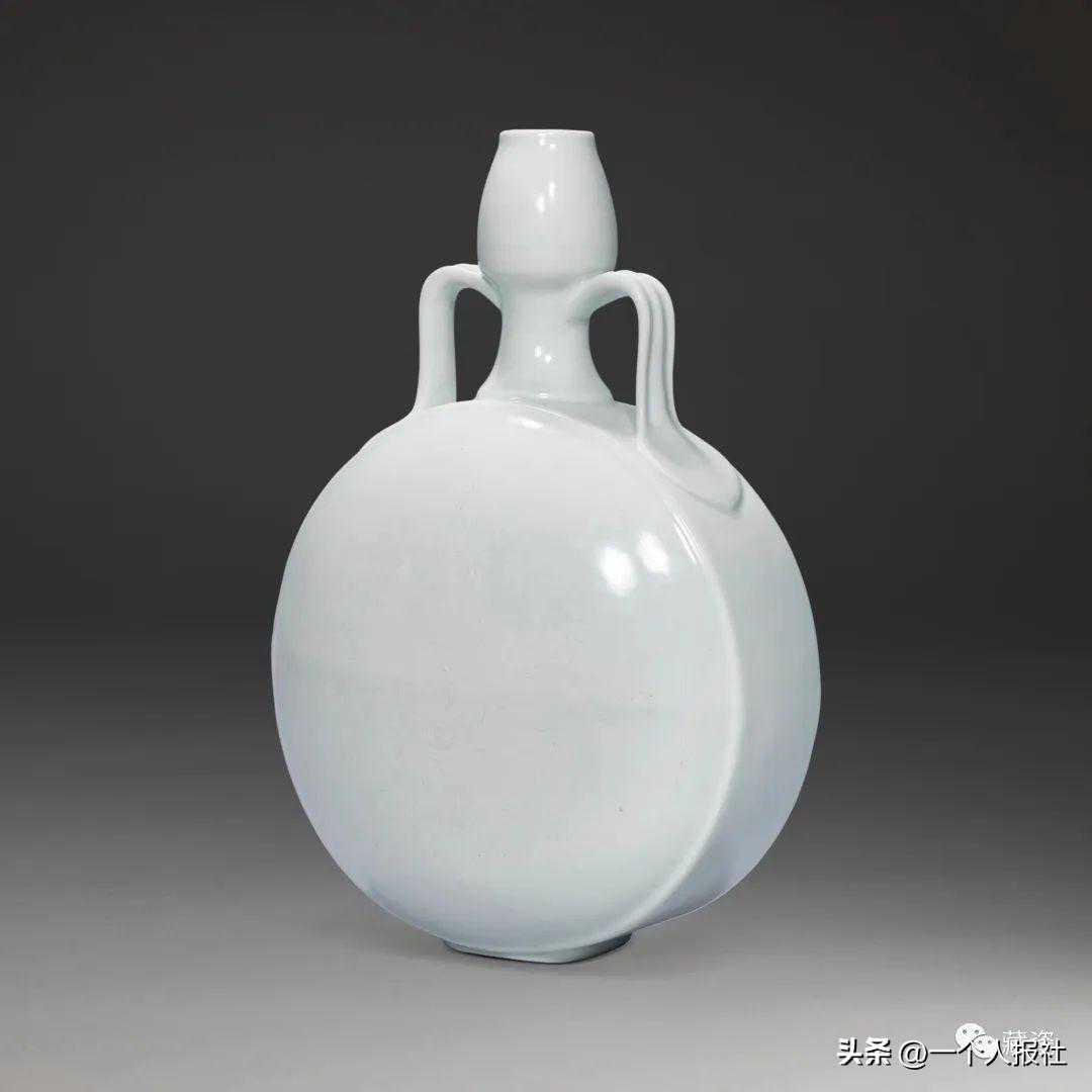 Lot2814明永乐甜白釉暗刻轮花纹绶带耳葫芦扁瓶