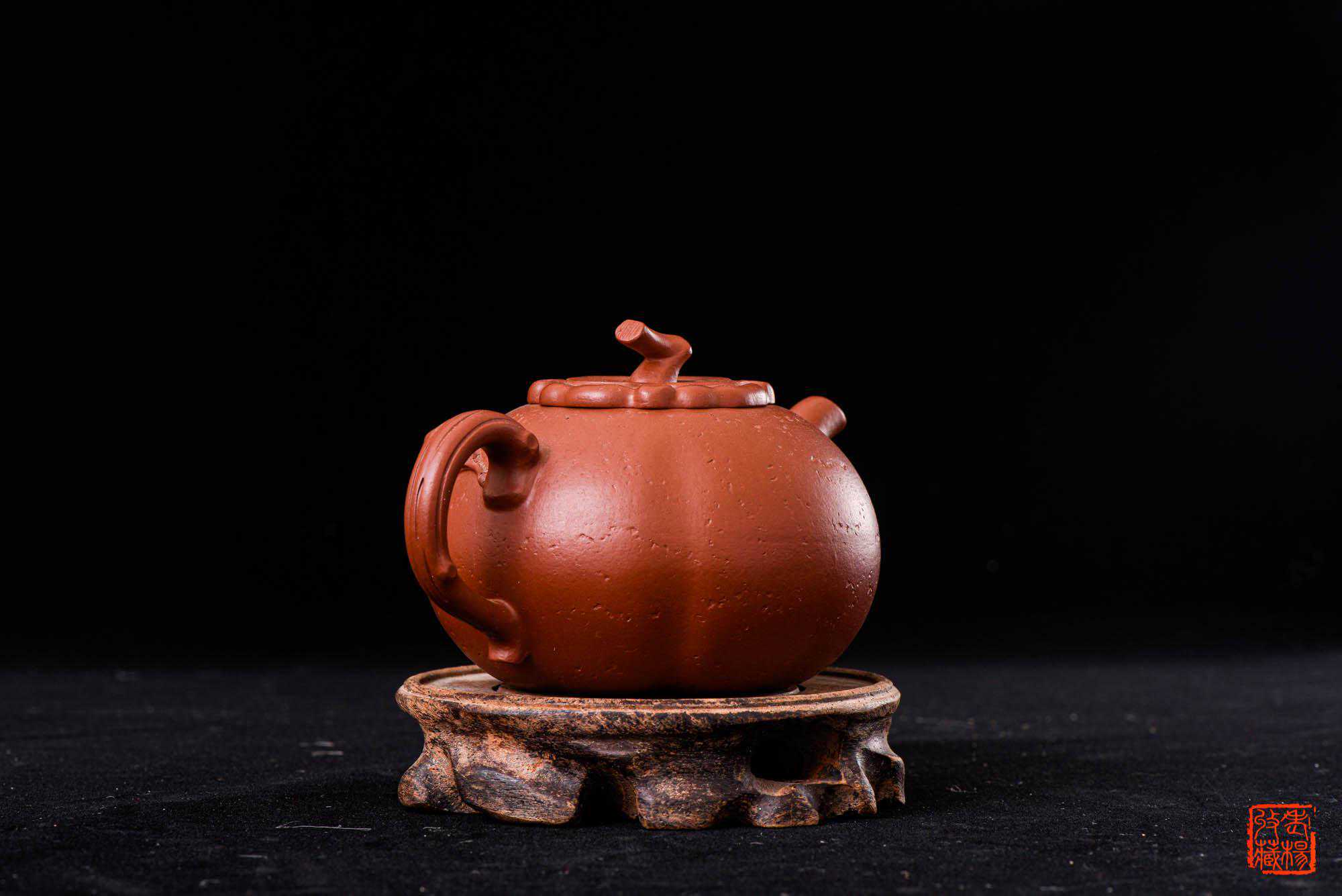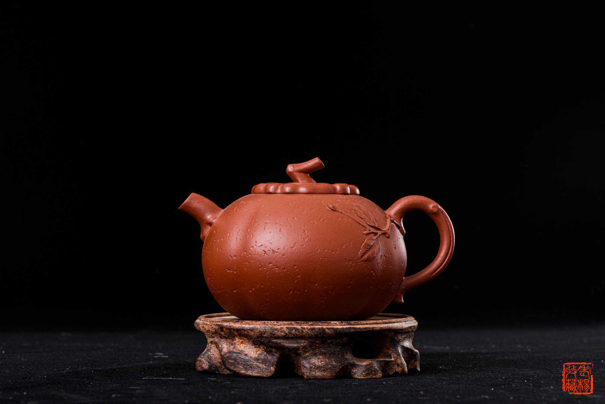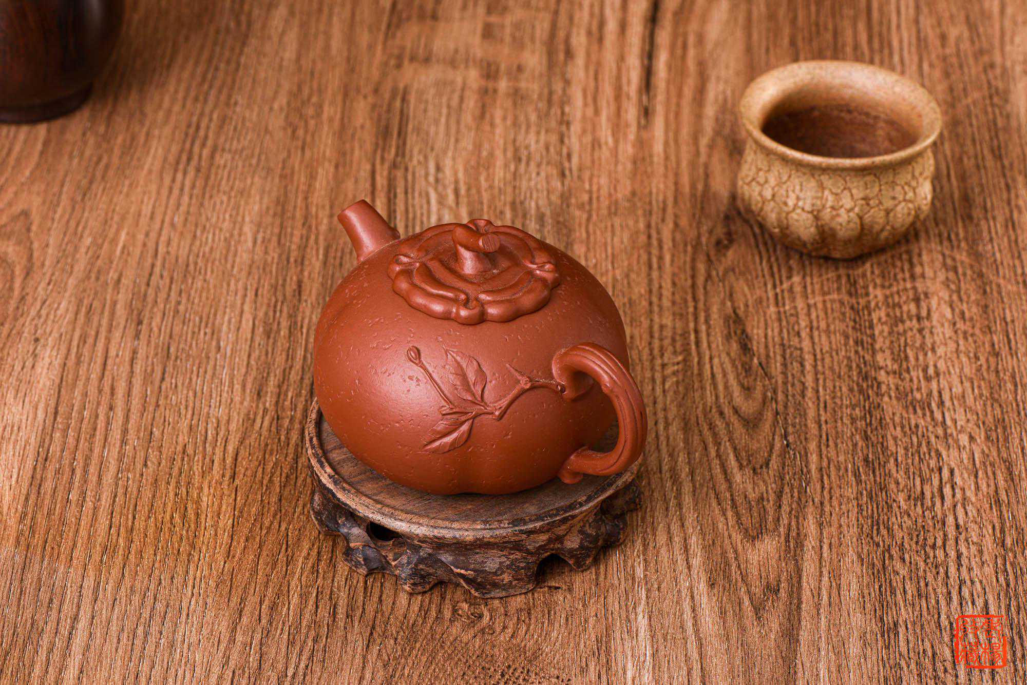 器身以秋季果实柿子为造型,实用与形态尽善尽美,赋予紫砂壶更多的欣赏性和把玩性。